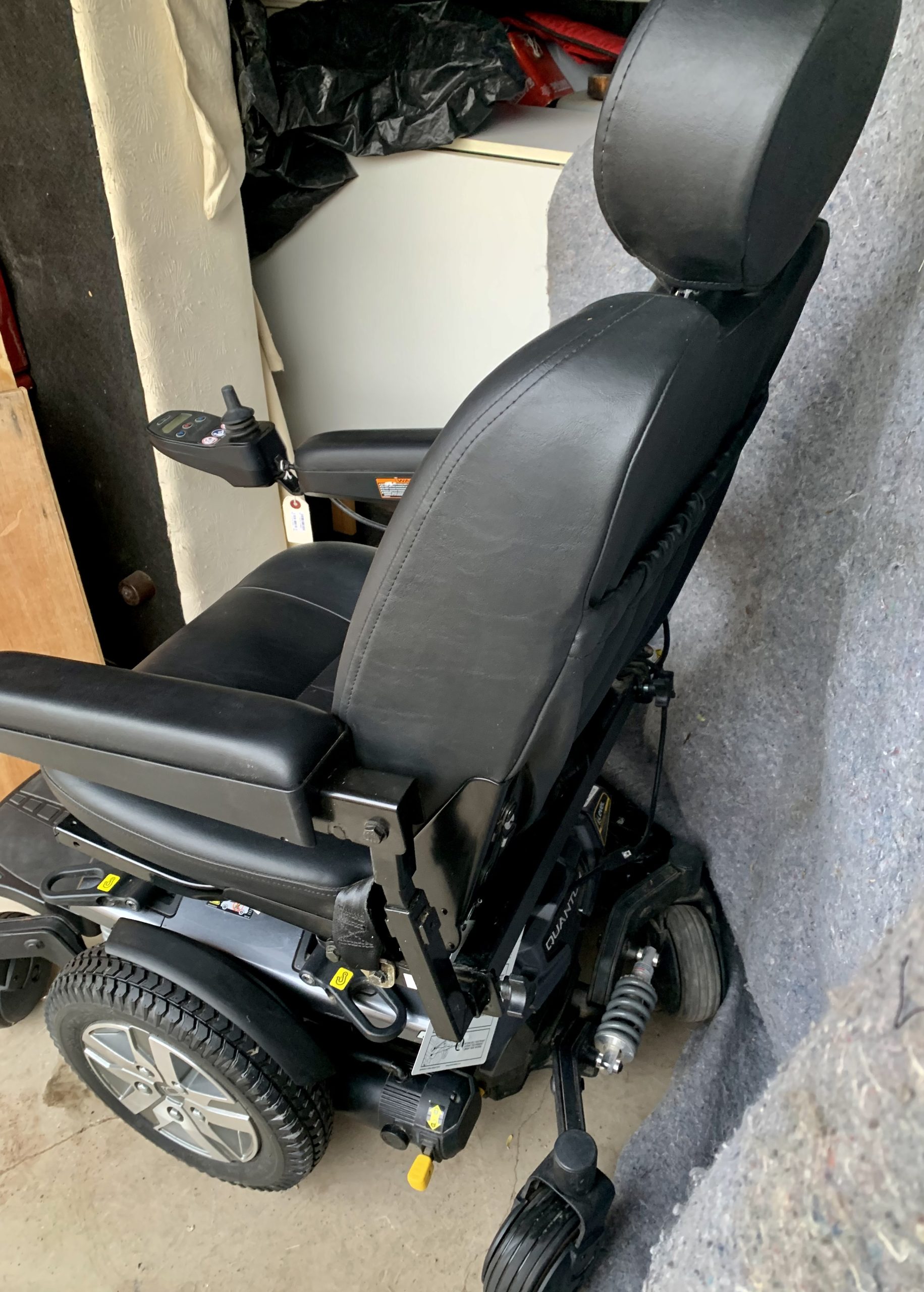 Gently used and in Excellent condition. Batteries have been load tested with charge holding at max level for 30 plus days. Features include: Chair Tilt, Recline Legs Clean I level compatible, Adjustable Footrests, Air Seat Cushion, Elevating Legrest, Flip Up Armrests, Q-Logic 3 Controller, Padded Armrest, LED Fender Lights. Cost New is $16k, this is a Bargain! Please don’t hesitate to call/text for more pics, with questions, and for serial number! Merry Christmas and God Bless