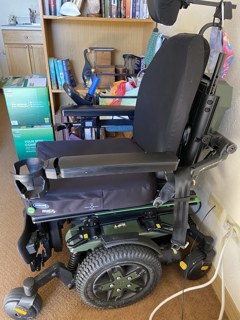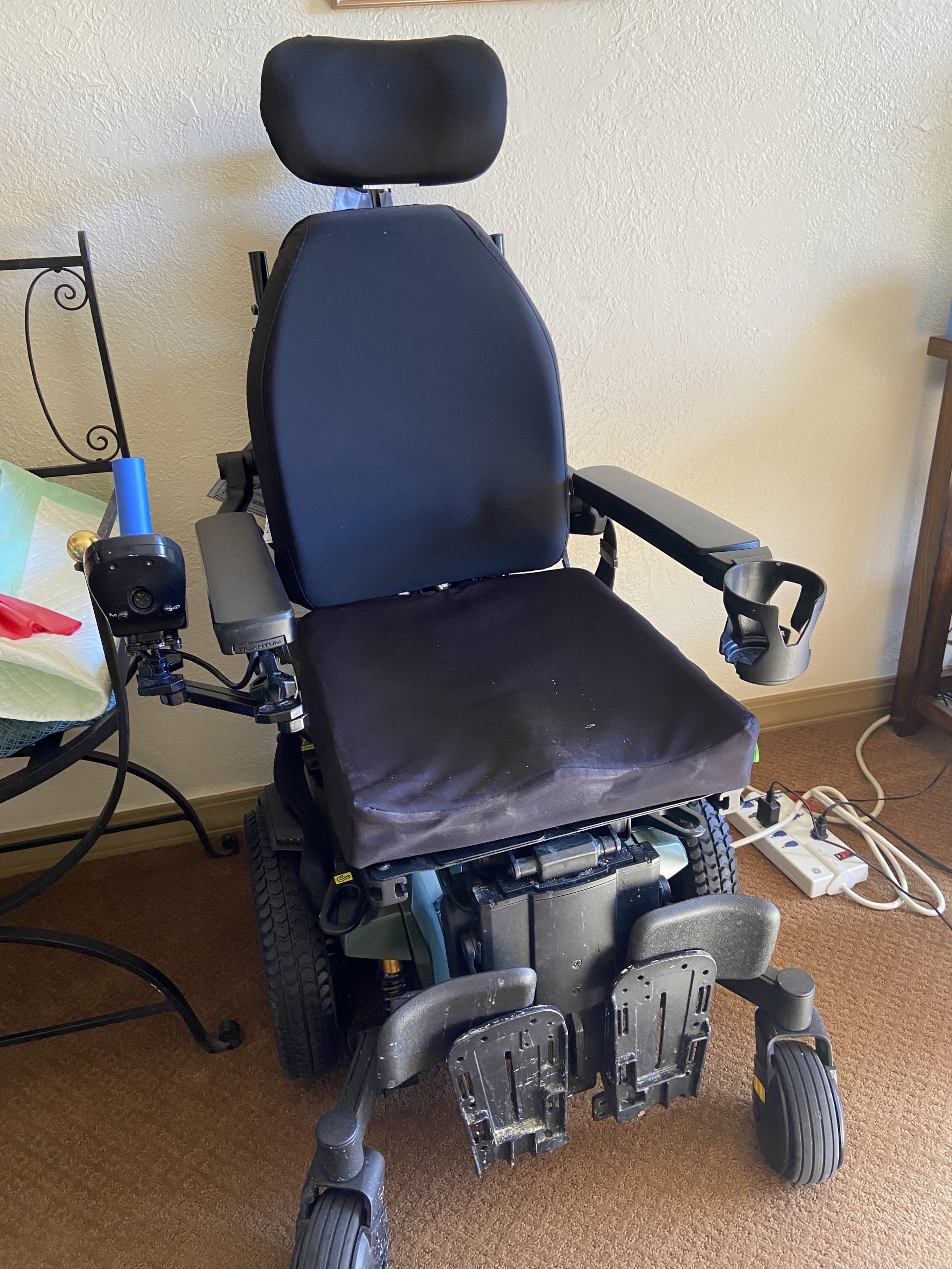 Q6 Edge 3 3SP-SS Motorized chair needs a good home! It comes with cushions, removable headrest, electric NE Plus TB3 Power Tilt AFP through joystick, articulating foot platform, swing away inline joystick, cupholder, battery, charger and manuals. It is in excellent condition, few miles on it and collecting dust! It was purchased in 2019 and has not been driven for almost a year due to current owners decline and inability to use. It has had general maintenance for upkeep and adjustments. The base is a lovely green and the chair is comfortable to sit in and elevate legs. It is currently residing in Wheatridge CO. and if interested could arrange to see it either in person or through a video. New owner would need to have vehicle or transportation that would have a lift for the chair, since we do not have a way to transport this chair at this time. We would love to have someone who needs this chair get it! Thanks so much!