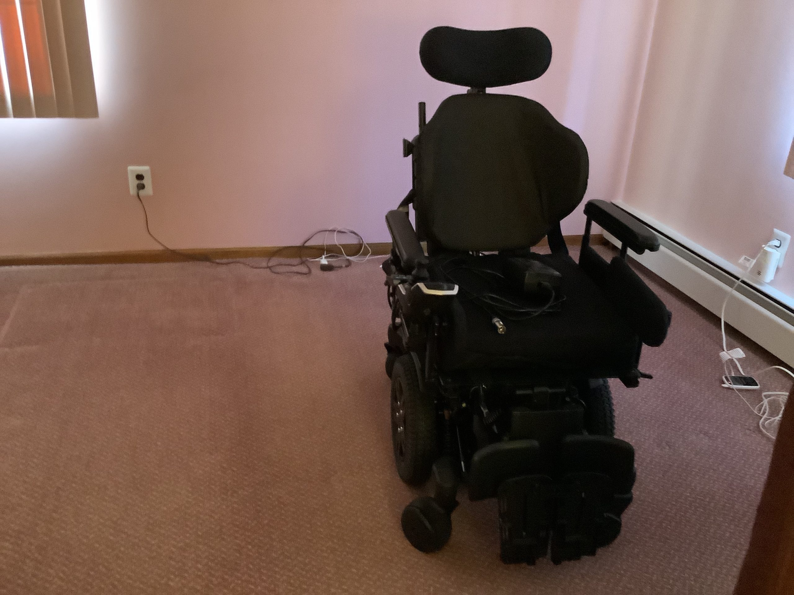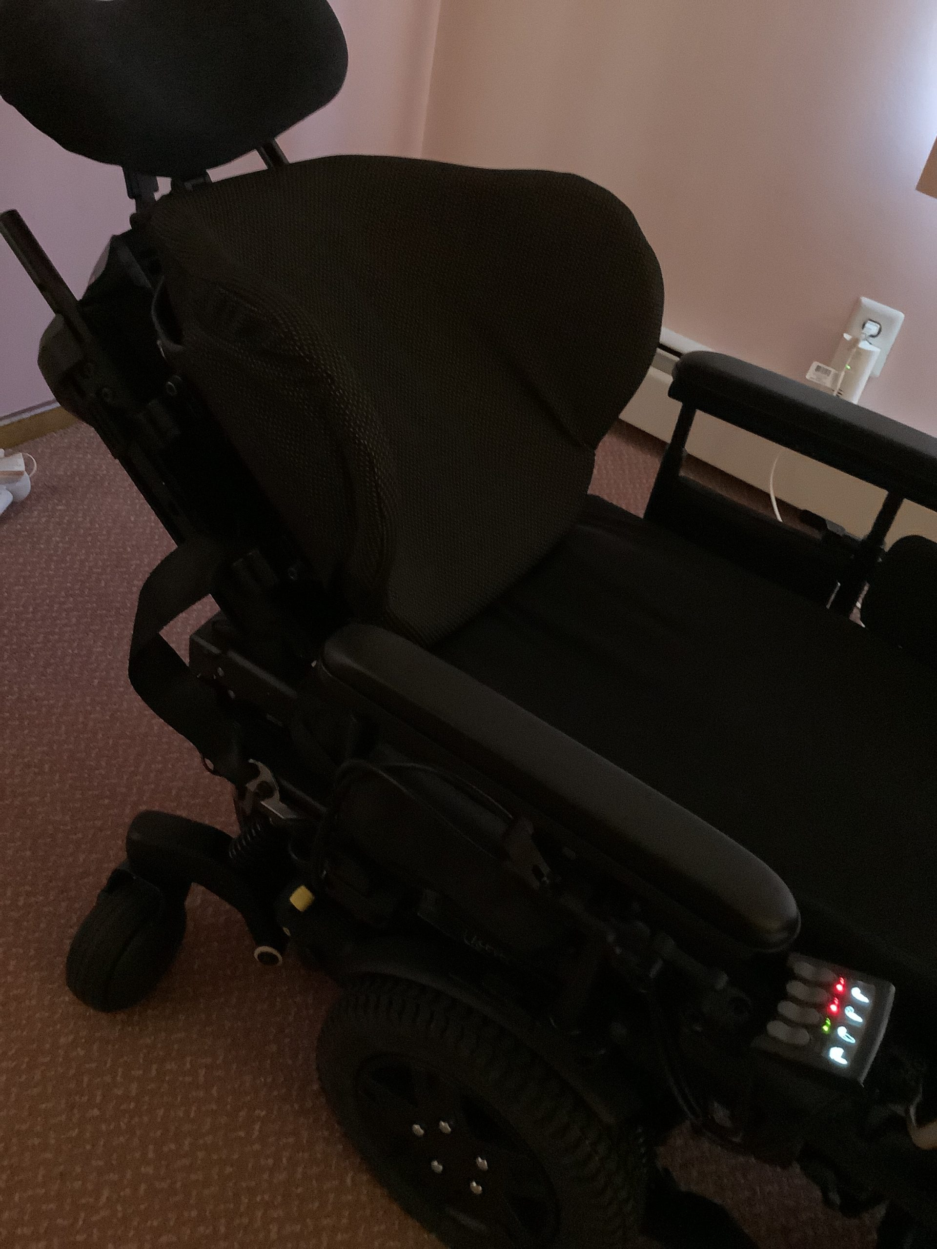 Q6 Edge3 Stretto was purchased new in November of 2021. The chair’s list price was $22,440. Was only used a few times indoors never outdoors. The chair is full size and is fully equipped with seat rise, Tru Balance 3 Tilt and Recline ,Jay fusion cushion, swing away joystick, battery charger , foot platform, Q-logic 3 Ex Controller module, Multi Act Control through laces & Qlogic3, 5” front castors, flat free drive wheel, black rim tires with lug nuts. Fender assembly switch lights, shroud rear door with reflectors, 55ah battery stop assembly. Head rest pad 14”, 50” lap belt. Cup holder, Usb charger port assembly. Chair is in excellent condition. Was never used outside. Original cost was $22.400. My wife had MS and passed away. The chair is located in South Jersey . I can provide a video if necessary to show you that it is in excellent working condition and that all the functions listed are working properly.