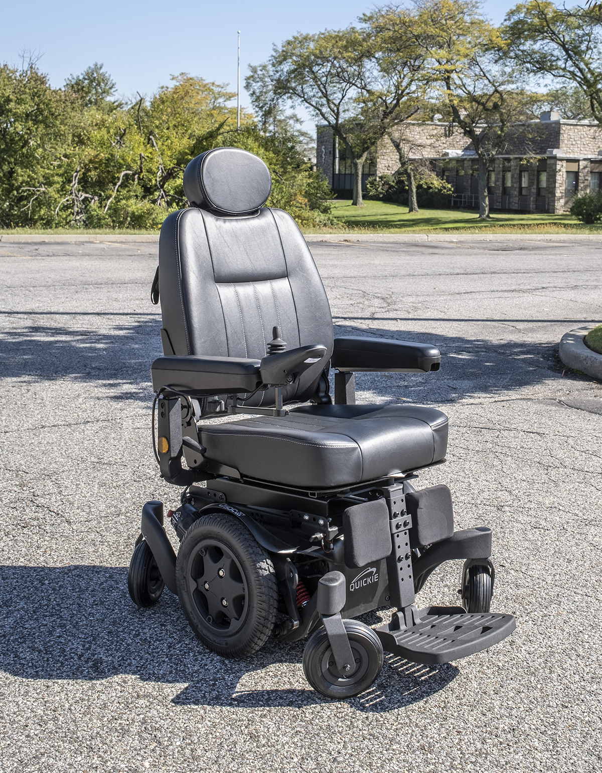 The QUICKIE Q500 M power wheelchair balances superb mid-wheel drive indoor maneuverability with outstanding performance and head-turning style.