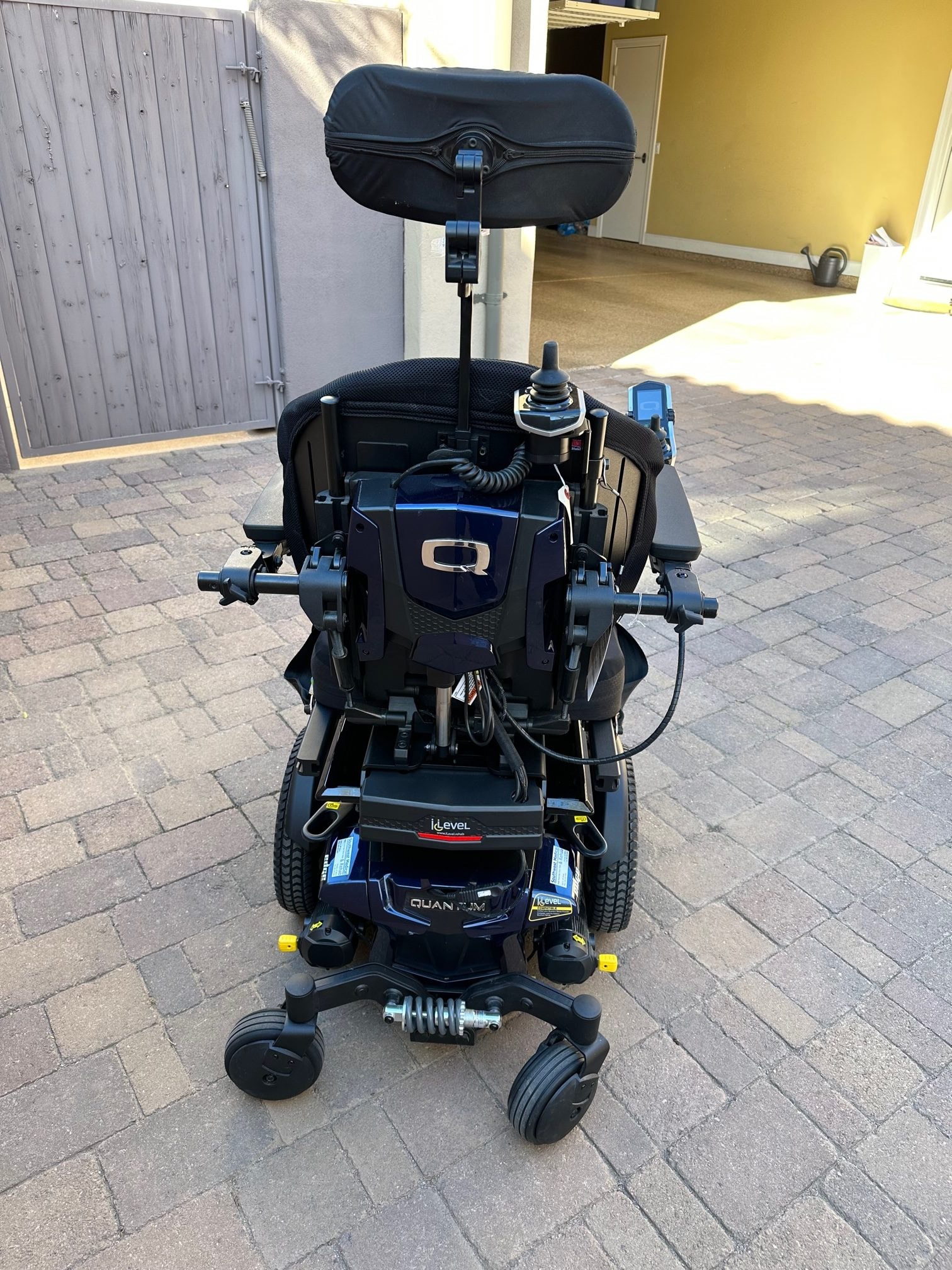 This is a Nearly New (un-used) Quantum 2.0 Power Wheelchair with iLevel capability. This chair has never been used. It was purchased and upgraded for my father, who's health has declined and cannot use it. It has been completely looked over by Southwest medical & Rehab and is in perfect shape.