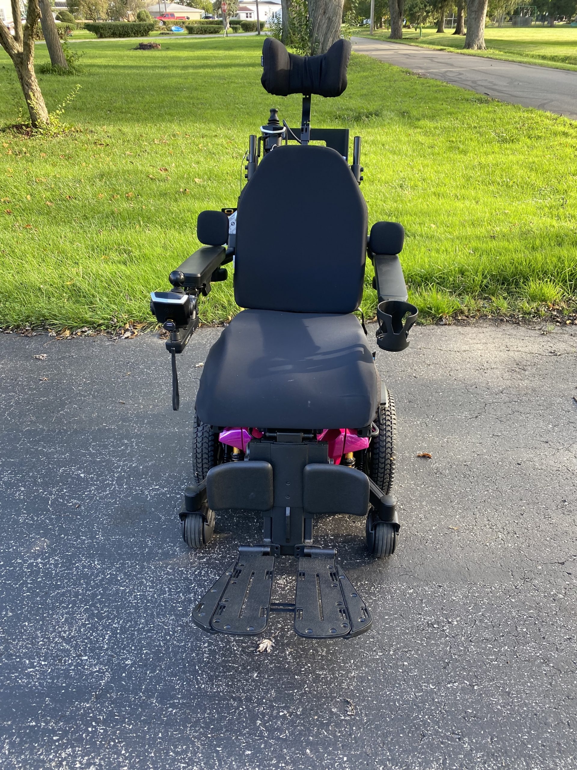 Purchased brand new less than a year ago, this power chair is in excellent condition. It was custom built for a 5’6 170 lbs person. Has less than 10 hours on it and has mostly been used indoors. The chair has a long battery life and multiple speeds. Top speed is around 8 mph. The chair was originally over $30,000. It is very well built and I would love to see it go to a new home where it can be used.