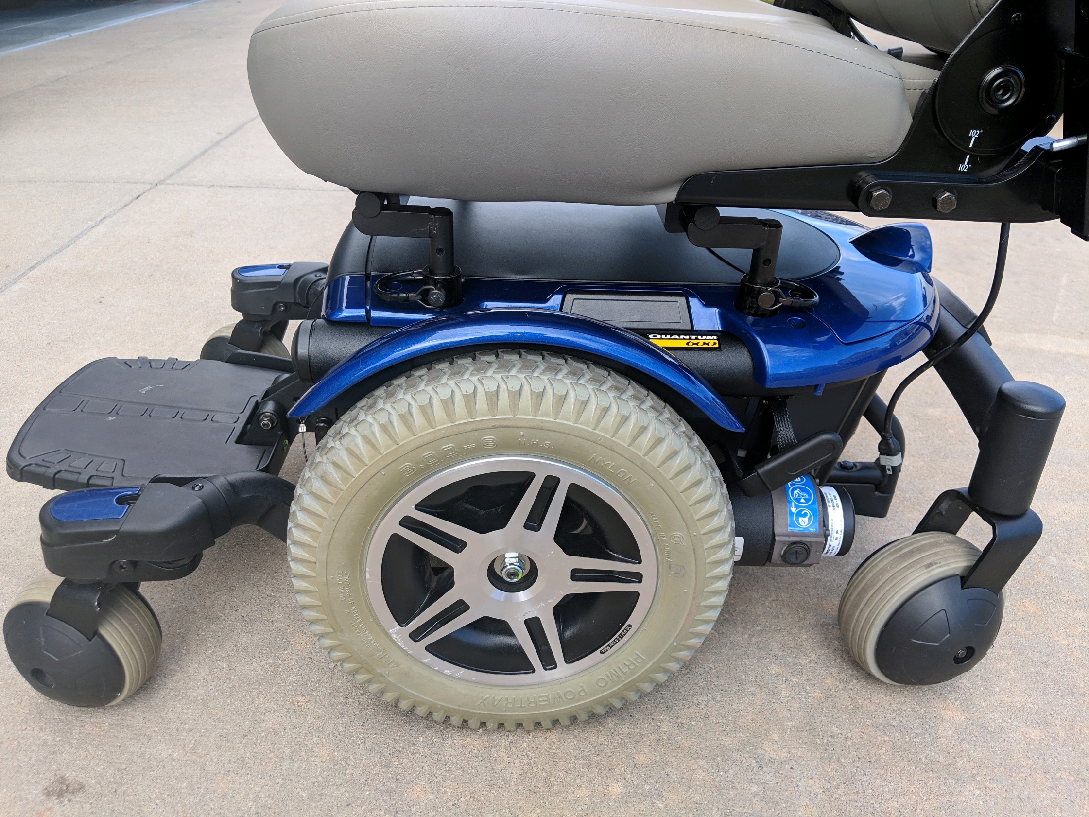 Brand New Batteries!!! WEIGHT CAPACITY300 lbs. (400 lbs. upgrade available)MAXIMUM SPEEDup to 5 MPH/6MPHGROUND CLEARANCE3"TURNING RADIUS20"OVERALL LENGTH36.5"OVERALL WIDTH23"DRIVE WHEELS 14" Pneumatic (std.) OR 14" Solid (opt.)CASTER WHEELSRear- 6" Solid Omni-Casters, Front- 5" Solid Omni-CastersSUSPENSION ATX -Active Trac w/ extra stabilityDRIVE TRAIN 2-Pole Glide Motors, Mid-Wheel 6 or 4-Pole 6 MPH MotorBRAKING SYSTEM Intelligent brakingELECTRONICS (STANDARD) 70 AMP VR2ACCEPTS SPECIALTY CONTROLS YesSTANDARD BATTERY CHARGER 8 AMP OFF-BOARDPER CHARGE RANGEup to 20 milesBATTERY Two 12-Volt, NF-22BATTERY WEIGHT 38 lbs.BASE WEIGHT 129 lbs.SYNERGY WITH MANUAL RECLINE SIZES10"-20"(width), 10"-20"(depth)SYNERGY WITH MANUAL TILT SIZES10"-16"(width), 10"-16"(depth)TRU-BALANCE 2 STANDARD SIZE18"(width), 16"(depth)TRU-BALANCE 2 POWER TILT AND RECLINE SIZES14"-20"(width), 14"-20"(depth). Please contact us with any questions. This unit was used briefly by a relative and is in very good condition. I can deliver if you're within the denver Metro area. We would really like this to move before the holidays. It is clean and ready to be used by someone in need. If you or someone you know is in need, please give us a call asap.