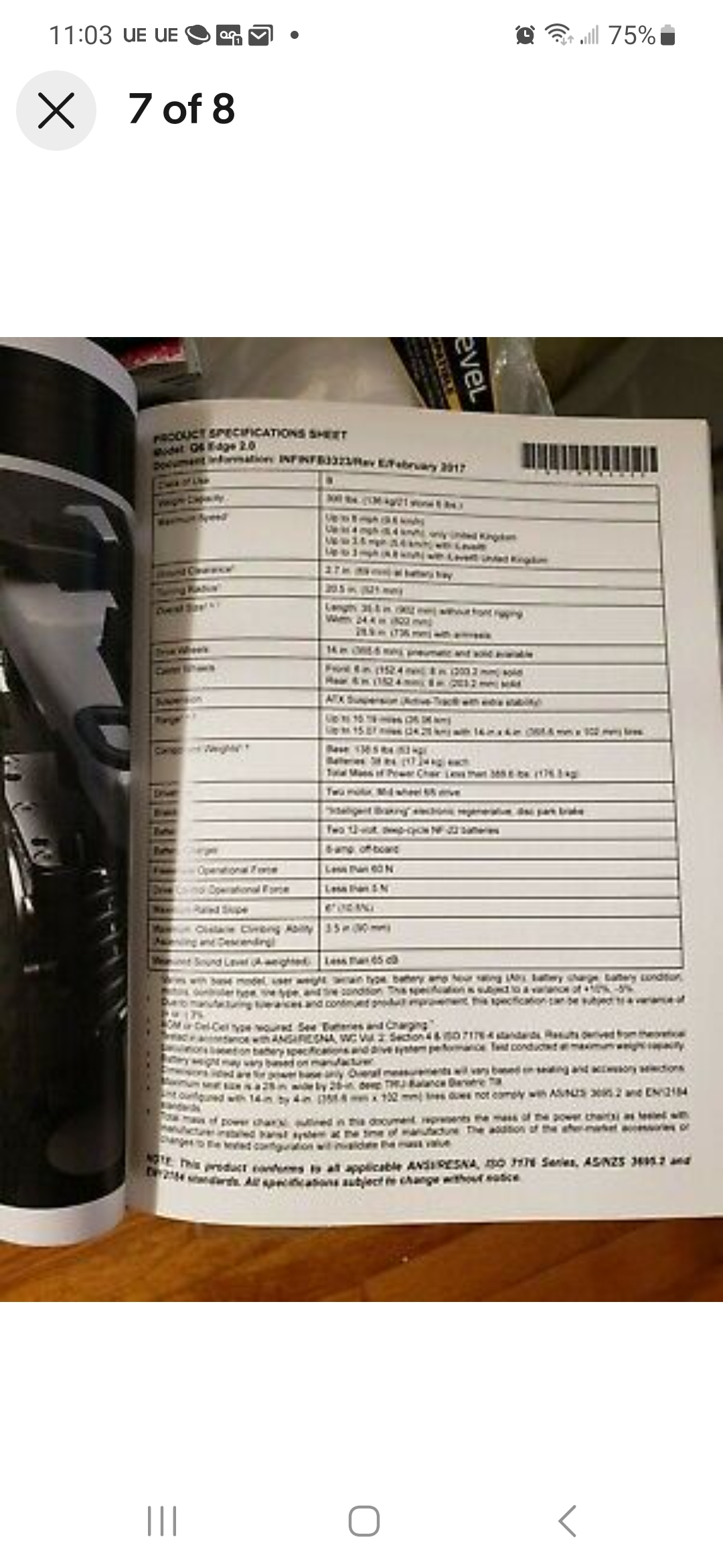Speed varies with user weight, terrain type, battery charge, battery condition and tire pressure.
