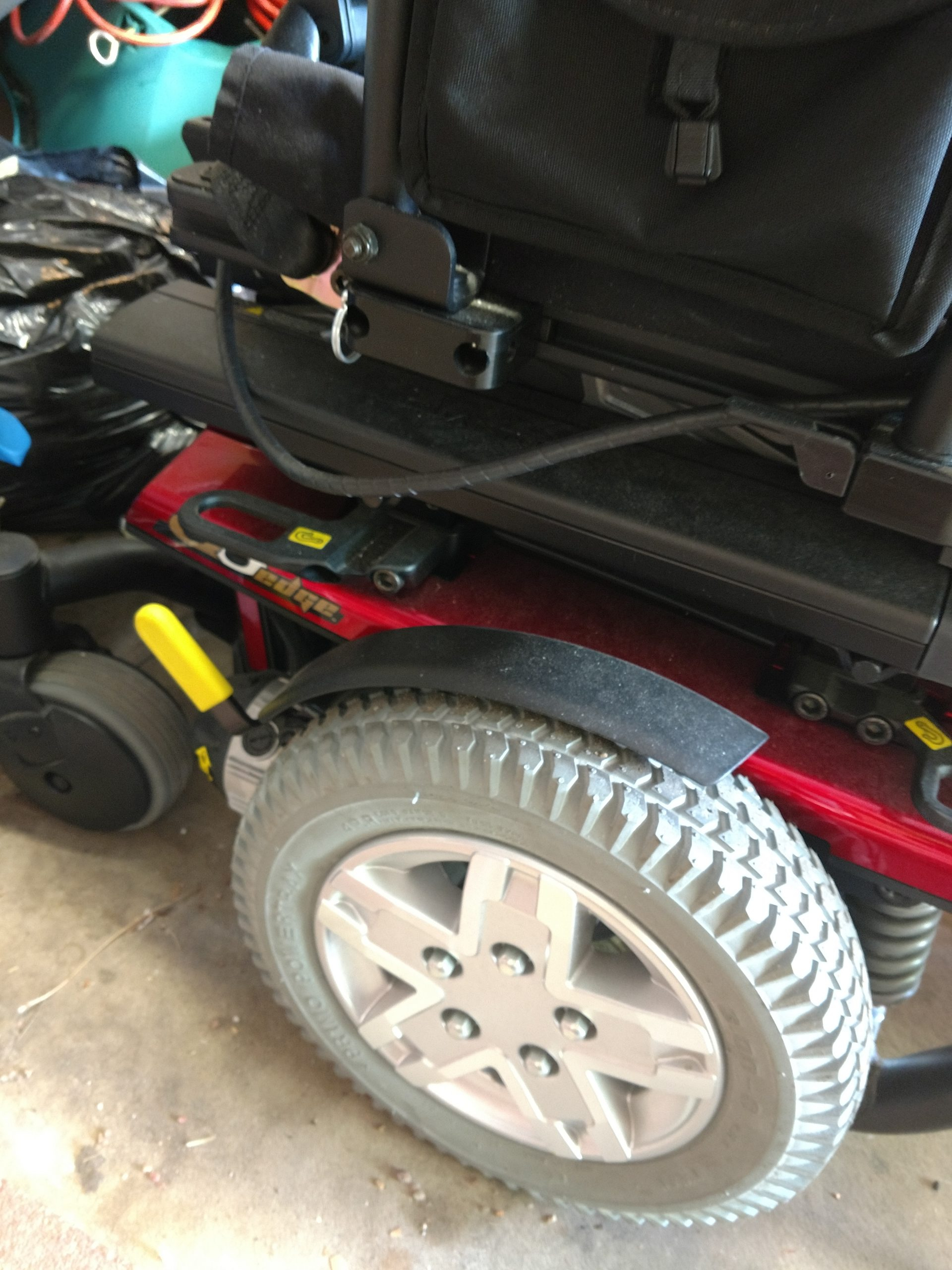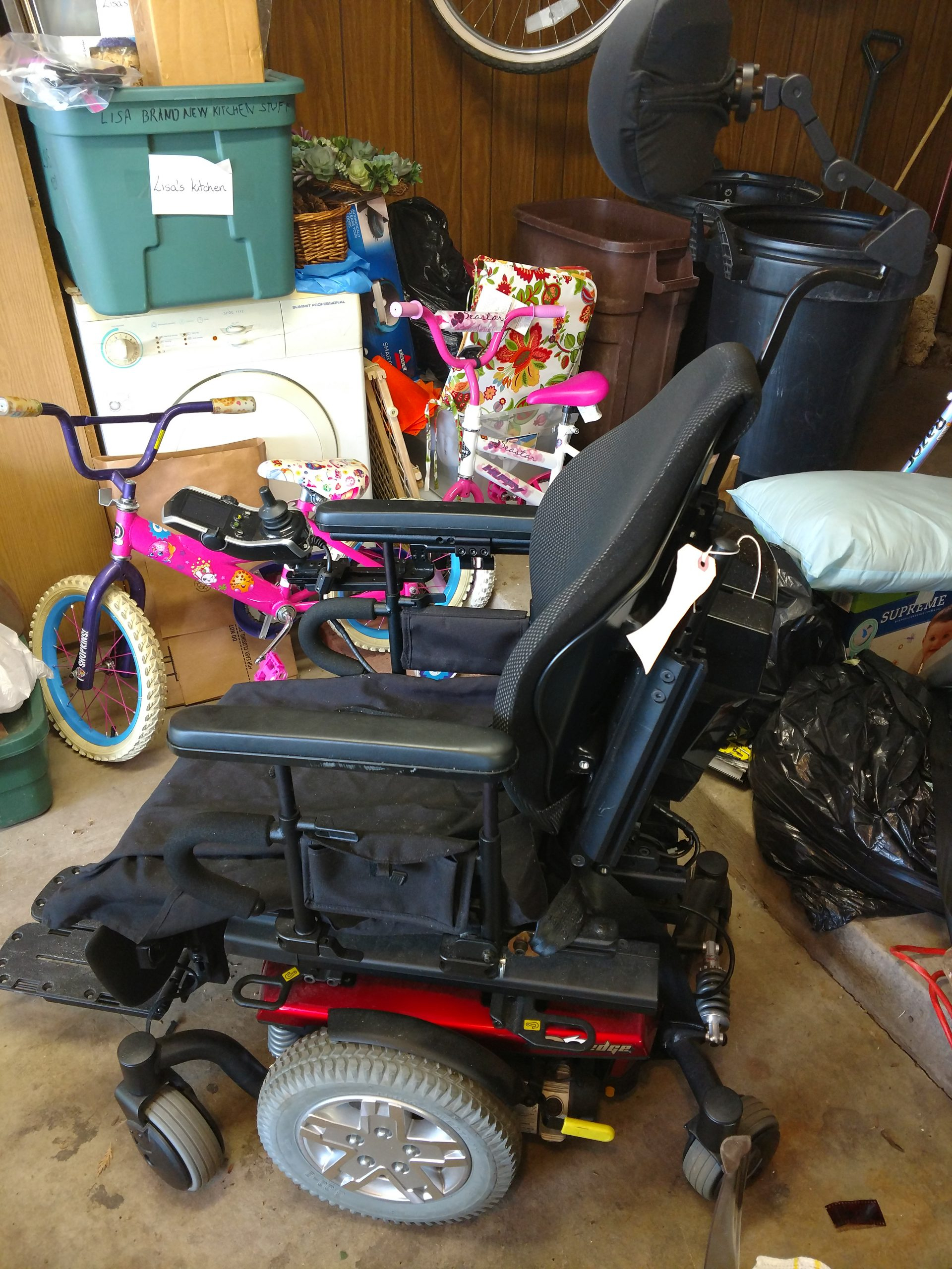 This chair was purchased for my father in law in 2014 and he used it occasionally. It is in good condition and comes complete with charger. The use was approximately 15-20 hours. It is located in Centennial, Colorado. Very maneuverable and easy to use. This chair is adjustable for your comfort and ease of use. The mid wheel drive makes it a comfortable ride as well. I am also selling a carrier and lift that is trailer hitch mountable. It is a Harmar AL 300 in good condition. You may contact me by phone, email, or text if you would like to see it or purchase it. Please know that I cannot ship the chair or lift but am willing to deliver it within the Denver Metro area. The chair also has padded seat cushions and is easily movable with the drive disengaged. It moves well on hard floors or carpeted surfaces and can navigate outdoors easily as well. It is black with red accents.
