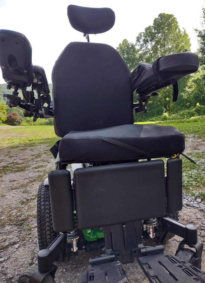- Like new, Quantum Power wheelchair, Used MAYBE 5 TIMES. Has charger, loaded with features. 4 speeds, air cushion seat. Bought for wife after she had a stroke & no longer need. Was $30,000 brand new. Weighs 368lbs. Super nice power wheelchair to nice to just set, would rather see someone who needs it have it. located in Elkview WV, made life so much easier for my wife during her time of need but she is walking again and just dosen't need it anymore. Only used outside a 3 times and she used her walker when inside. Chair will lift, recline and goes extremely well on all surfaces, long battery life and extremely comfortable chair, comfortable head rest and removable arm rest, handles inclines extremely well & 4 speeds ( this thing will move ) has horn & zero turn radius for tight maneuverability stores extremely easy and super quiet running. Over all just a really nice fully loaded power wheelchair.