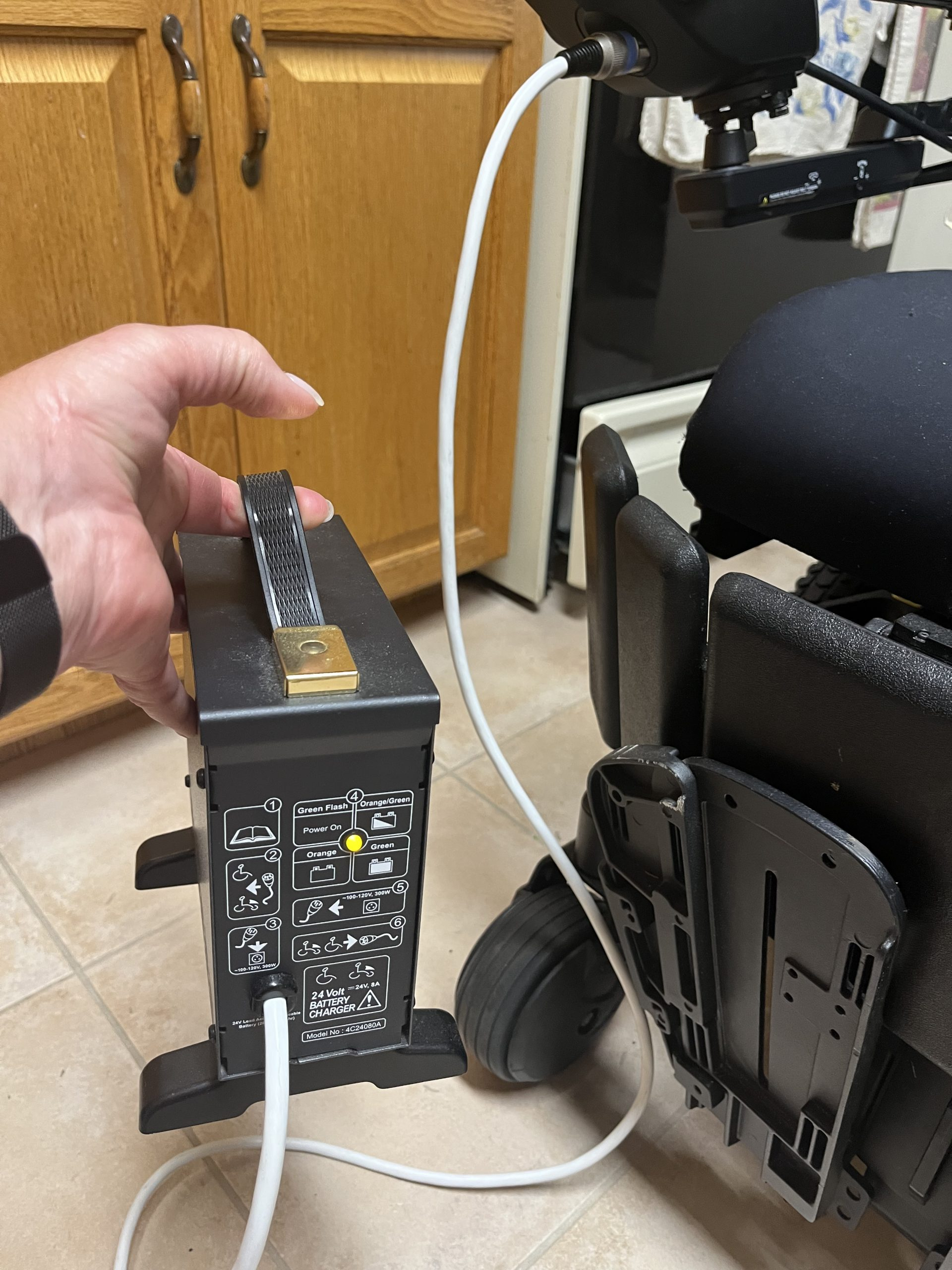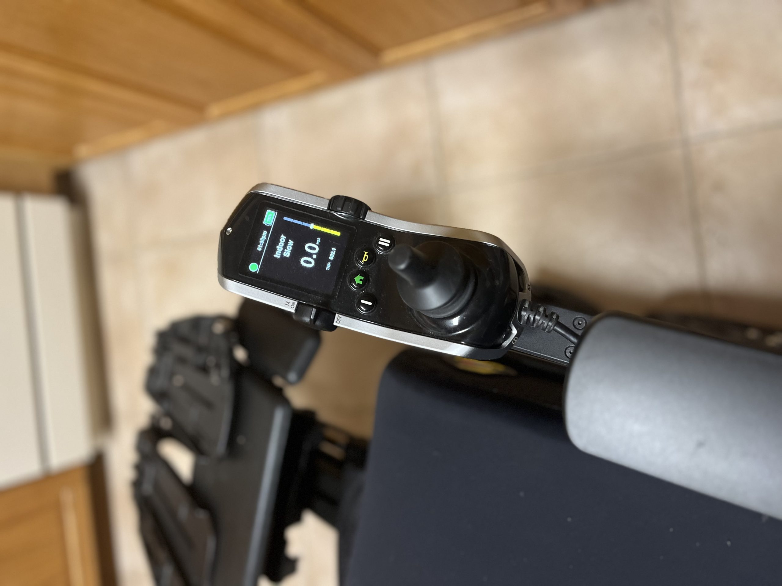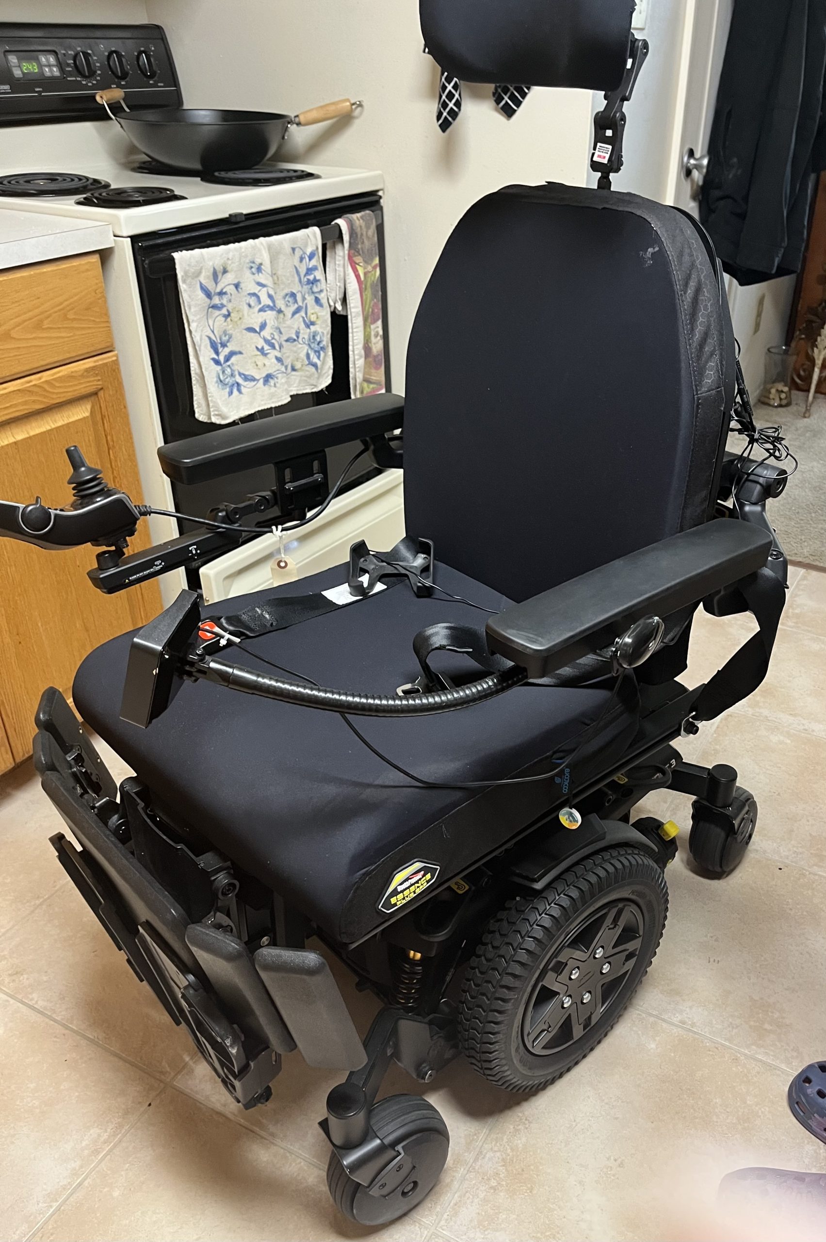 My cousin/God father is in the Stony Brook vet center and no longer needs this so it barely had been used. It is taking up space in his wife’s small apartment. He barely used it before he was admitted. It combines state of the art components with safety, comfort and style. The chair comes with LED fender lights, tilt and recline seat, joystick controller , armrest width is adjustable, armrest angle adjustment, armrest height adjustment, foot angle adjustment, power seat adjustment, seatbelt, back up camera, Bluetooth, indoor control, foot platform adjustment, battery charger, a single charge goes up to 19 miles, swing away footrests, horn, TRU-comfort cushions, TRU-balance 3 power positioning, it has intelligent breaking, swing away calf pads, six wheels and patented extra stability technology. It comes with Owners manual. The weight limit is up to 450 lbs. it’s a great chair and it is priced to sell. Thank you.