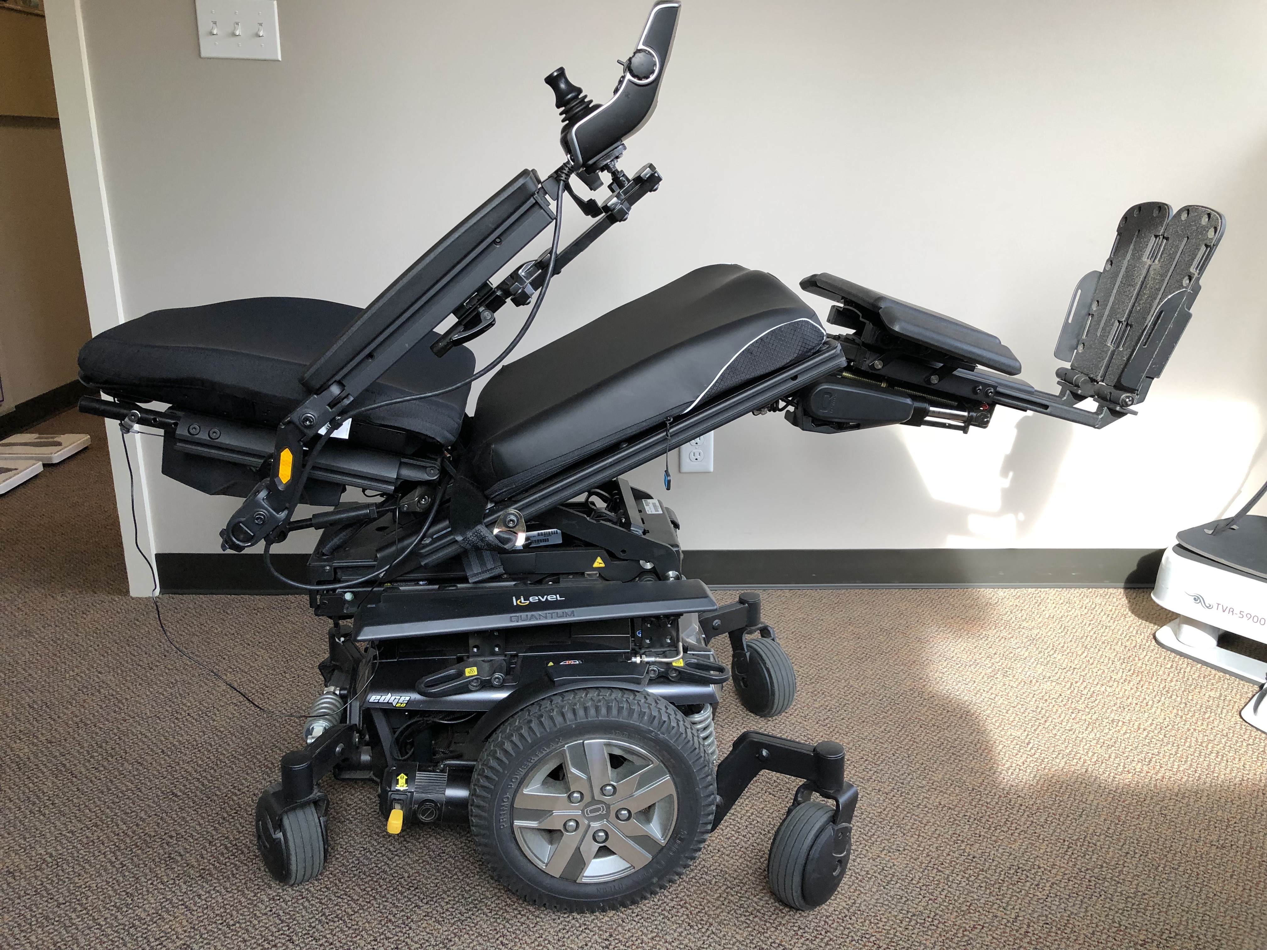 Pride Mobility Quantum Q6 Edge 2.0 iLevelPower Wheelchair is in Like New Condition. ONLY 35 MILES!! The iLevel Feature allows the user to drive this Power Chair at eye level of others while maintaining a normal walking pace pf 3.5MPH. Chair features a 19 x 19 inch Deluxe Rehab Seat, Flip Up Foot Plate, Q-Logic Joystick, 14 inch Solid Drive Tires, a Battery Range up to 15 Miles, and has 10 inch iLevel Seat Lift. With features like 2 Direct Drive Motors, Mid-Wheel 6 drive design and ATX Suspension, the Quantum 6 Edge is engineered to meet the performance needs of the most active user. Also, the Quantum Q6 Edge has a 20 inch Turning Radius offering exceptional maneuverability in tight spaces. The Pride Mobility Quantum Q6 Edge Power Chair is a Great Riding Chair and is the perfect choice for those who demand maximum stability and true all-around performance! Includes a set of quick release straps for travel security and headrest.