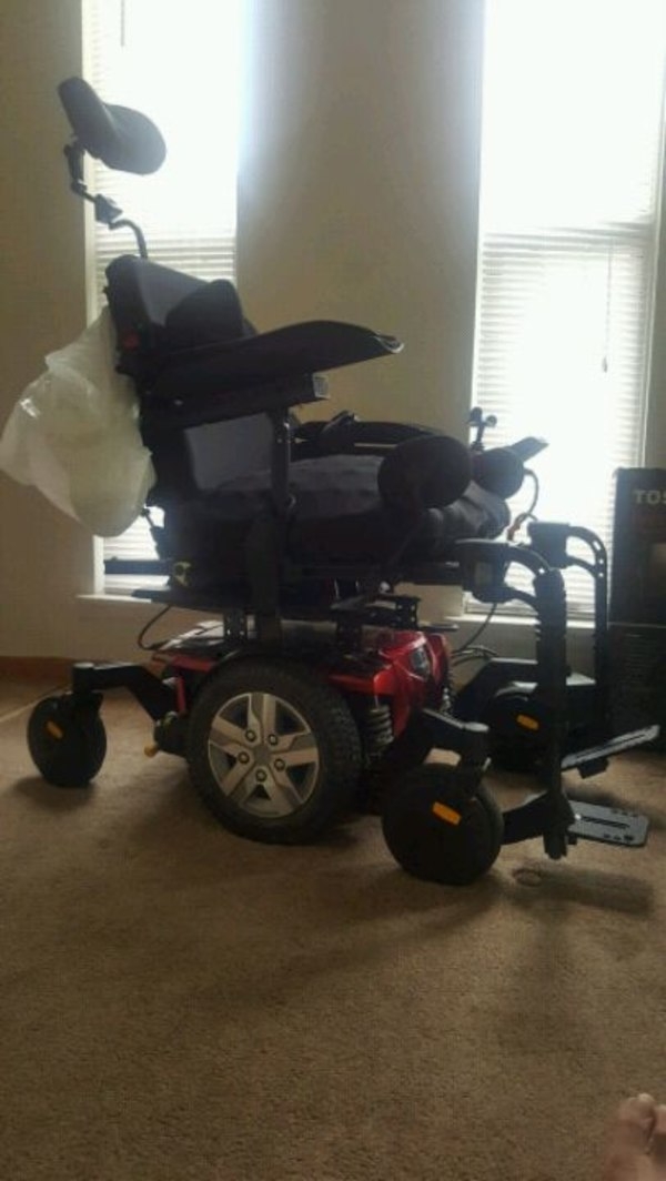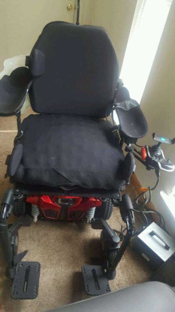 This is a Quantum Q6 Edge 2.0 Power Wheelchair is in very good condition with low miles on it.Used it for only 8 months .Need to sell ASAP.There are no major scratches or major damage.There is slight rust on the bolts of the frame but that can be cleaned of. All the functions and motor work fine like new thing. The color is black and red metallic and has the top speed of 6mph. New charger & Batteries.Feel free to contact me or message me here about the product.