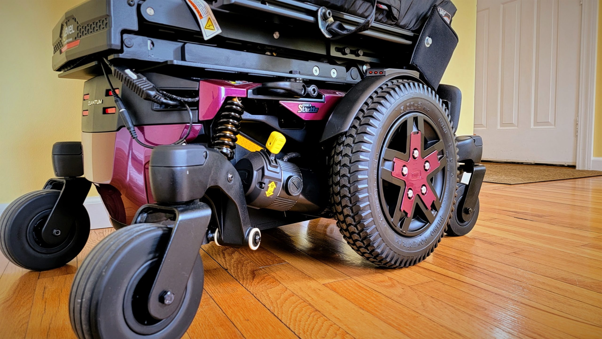 The Edge 3 Stretto® is the narrowest, most maneuverable power base in America! This narrow wheelchair base is perfect for navigating tight corners and small spaces. With an overall width of 20.47” with 12.5” drive wheels, the Stretto® is the best narrow wheelchair for children, teenagers and small adults to use in the home. In addition to its narrow width, the Edge 3 Stretto® is equipped with independent SRS (Smooth Ride Suspension), which offers increased shock absorption due to the angle of the shocks. Enjoy maximum obstacle climbing and increased overall comfort.