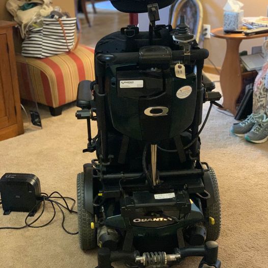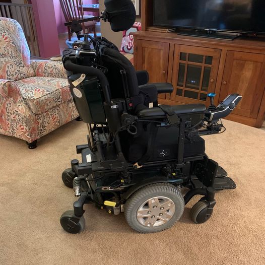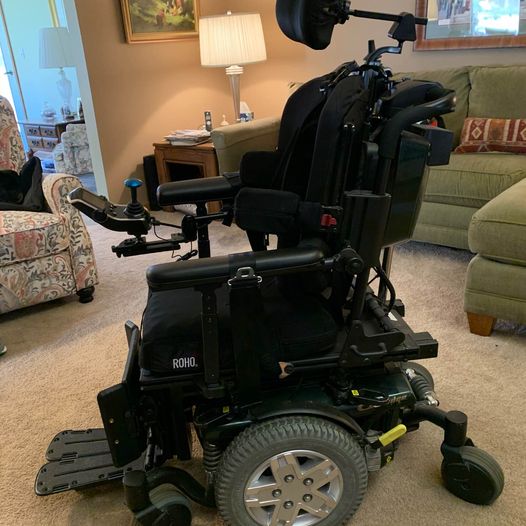 Very Gently used by my <100 pound sister. Includes acrylic custom tray, charger, ROHO adjustable cushion ($500 value). Fully adjustable recline, tilt, headrest. Lateral side supports that can be moved or removed. Torso over shoulder restraints. Attendant joystick control on back to assist your loved one in tight spaces or when they are tired.