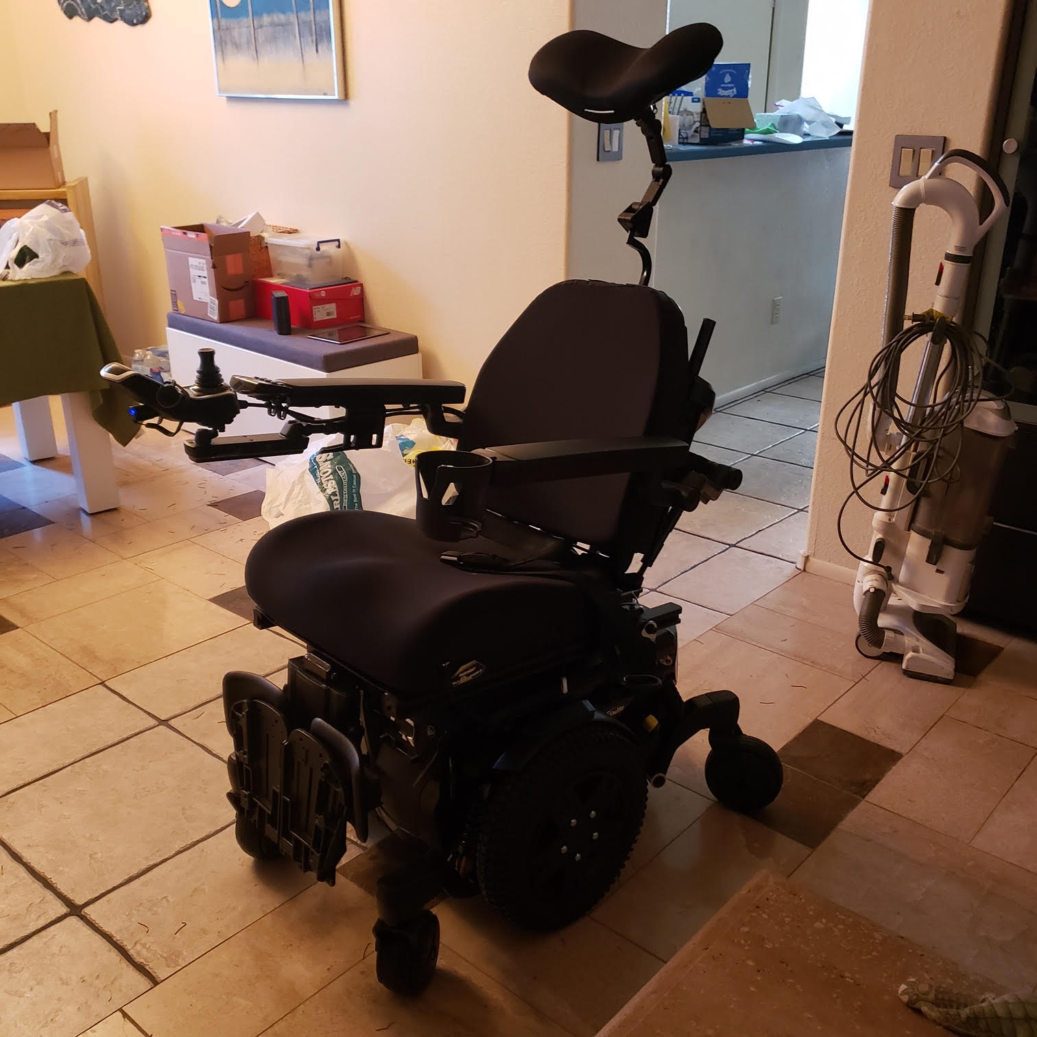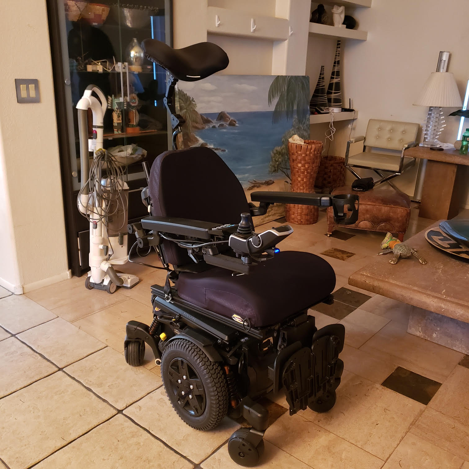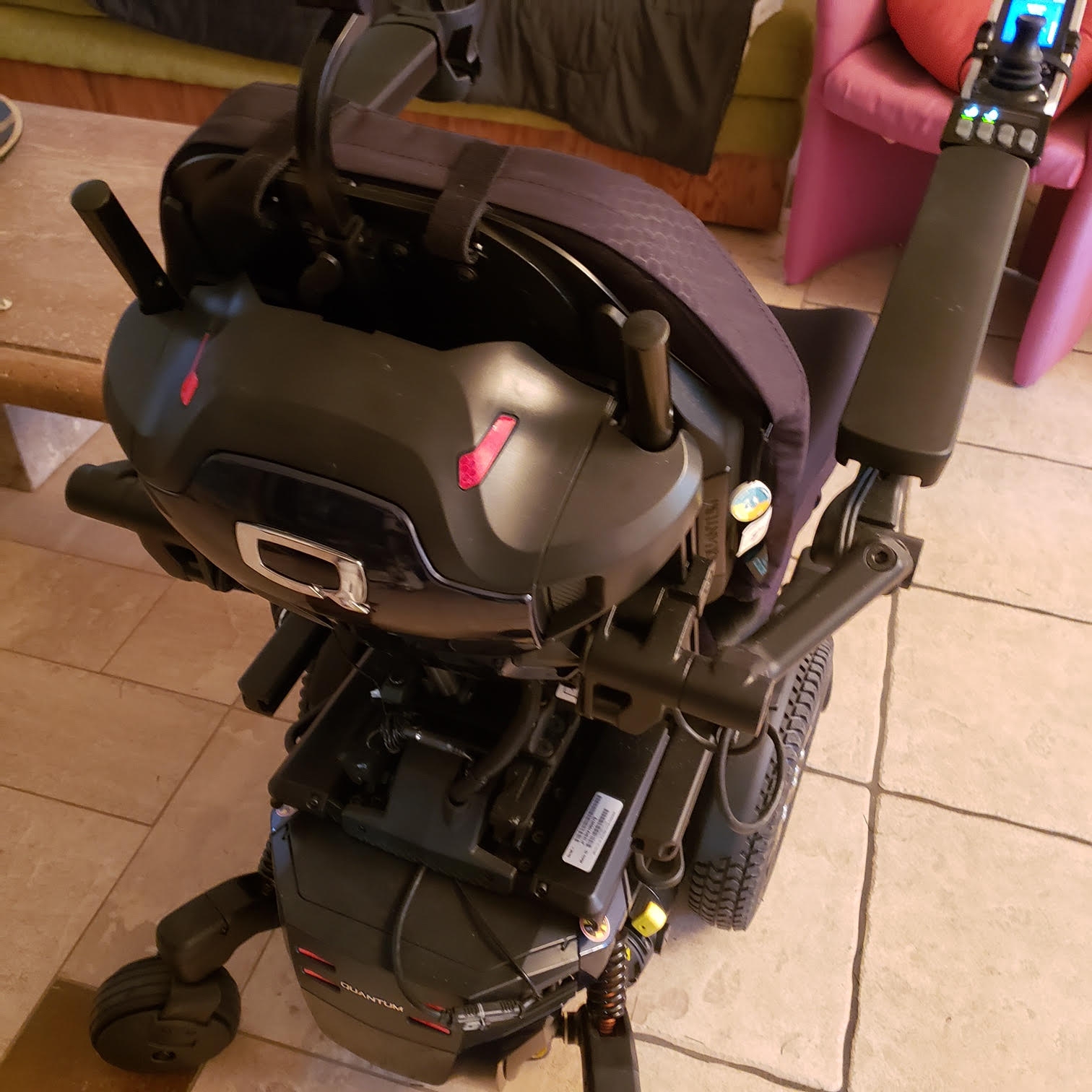 Offering a 2021 Quantum QS Edge 3 Stretto power wheelchair for sale. It has several options, including Power Tilt.