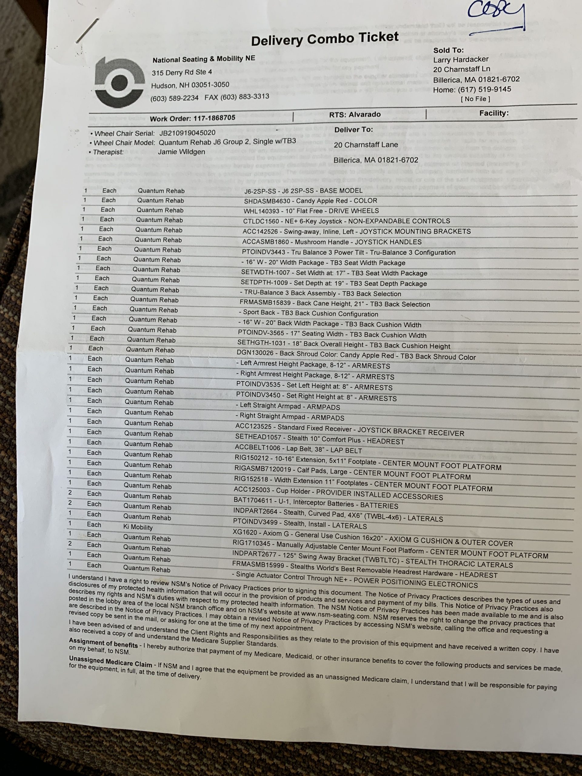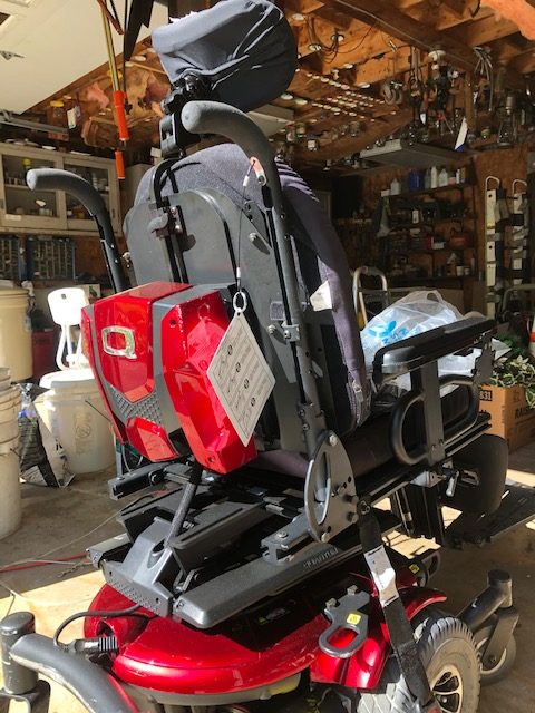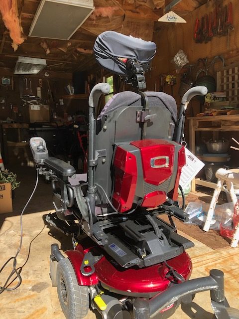 This Quantum J6 wheelchair was purchased new in May 2019. It belonged to my brother-in-law who had cerebral palsy. Sadly, he passed away in March this year. This wheelchair looks and operates like new. Warranty work was completed in February by National Seating and Mobility that included new batteries, battery charger, and joystick controller. It has remote tilt, and swing away joystick for close access to a table. Front left wheel may need replacing. Comes with a left and right lateral support and headrest. This is a custom build with 10" flat free drive wheels, Tru Balance 3 Power tilt, manually adjustable center mount foot platform, single actuator control through NE+, left and right straight arm pads. We would like to sell as soon as possible and willing to negotiate the price. We could potentially ship the wheelchair but do not know the specific details on how that can be accomplished