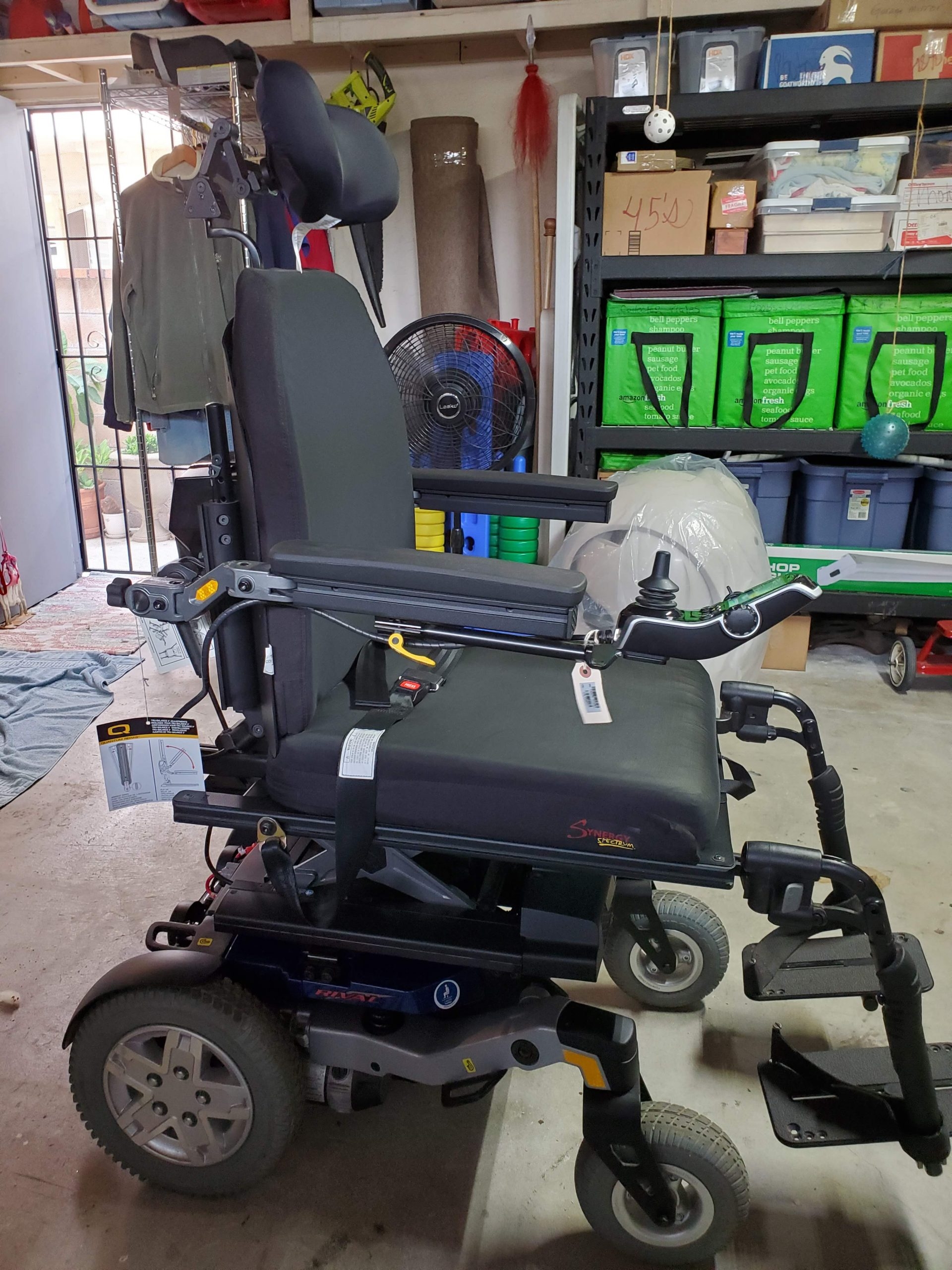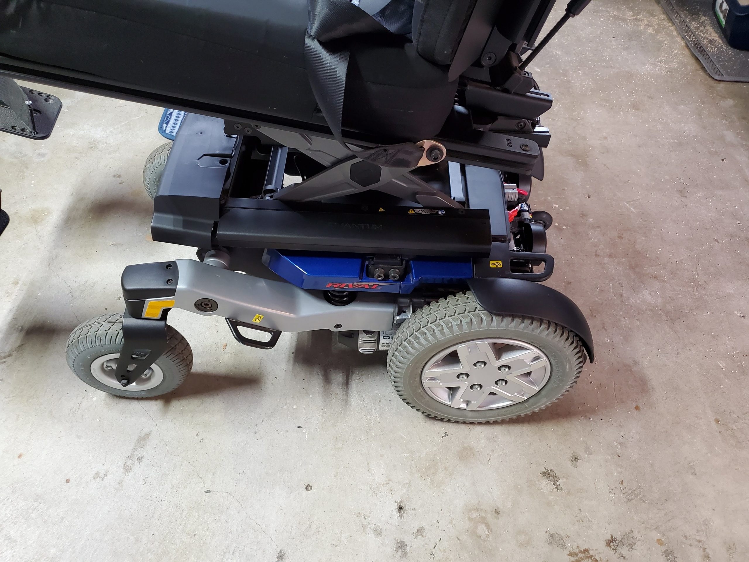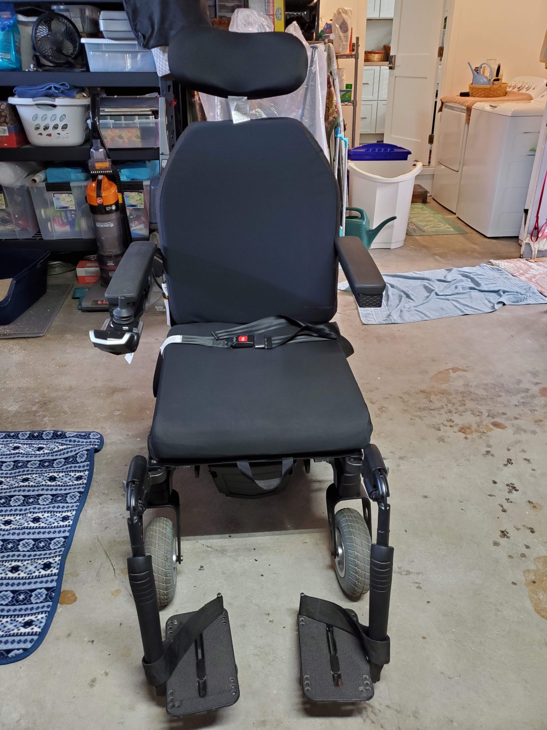 Quantum Rival 3 MP Power Chair with TruBalance3 Quantum Rehab Lift System, manufactured by Pride Mobility Products Corporation. Built and delivered 02/01/2014, was used less than 10 hours due to rapid decline in users health after delivery. Build for 6'2" 300 lbs male with Muscular Dystrophy. Garage kept, like new condition all original parts and accessories, manuals, programming unit, and charger included. New MK Gel Batteries purchased 09/21/20. Solid core tires has all the bells and whistles. Length without foot rests 36", with foot rests 50.9". Width 25". Turning Radius without foot rests 29.75" Weight 300lbs, max speed 6.6 mph. Two motor rear wheel drive, Active-Trac ATX with Long Trail Arm Suspension. Intelligent Braking system, disc park brake. Elevation system rear tilt 50 degrees and can tilt/recline up to 175 degrees. Spectrum 20' wide/22" deep seating system. 6x11 Angle Footplates. Lift extends up to 10". Obstacle Climbing Ability 1.5". Has Transit Securement System Hooks for easy safety tethering in transport vehicles. Very very clean, all tags still attached. Must see to appreciate.