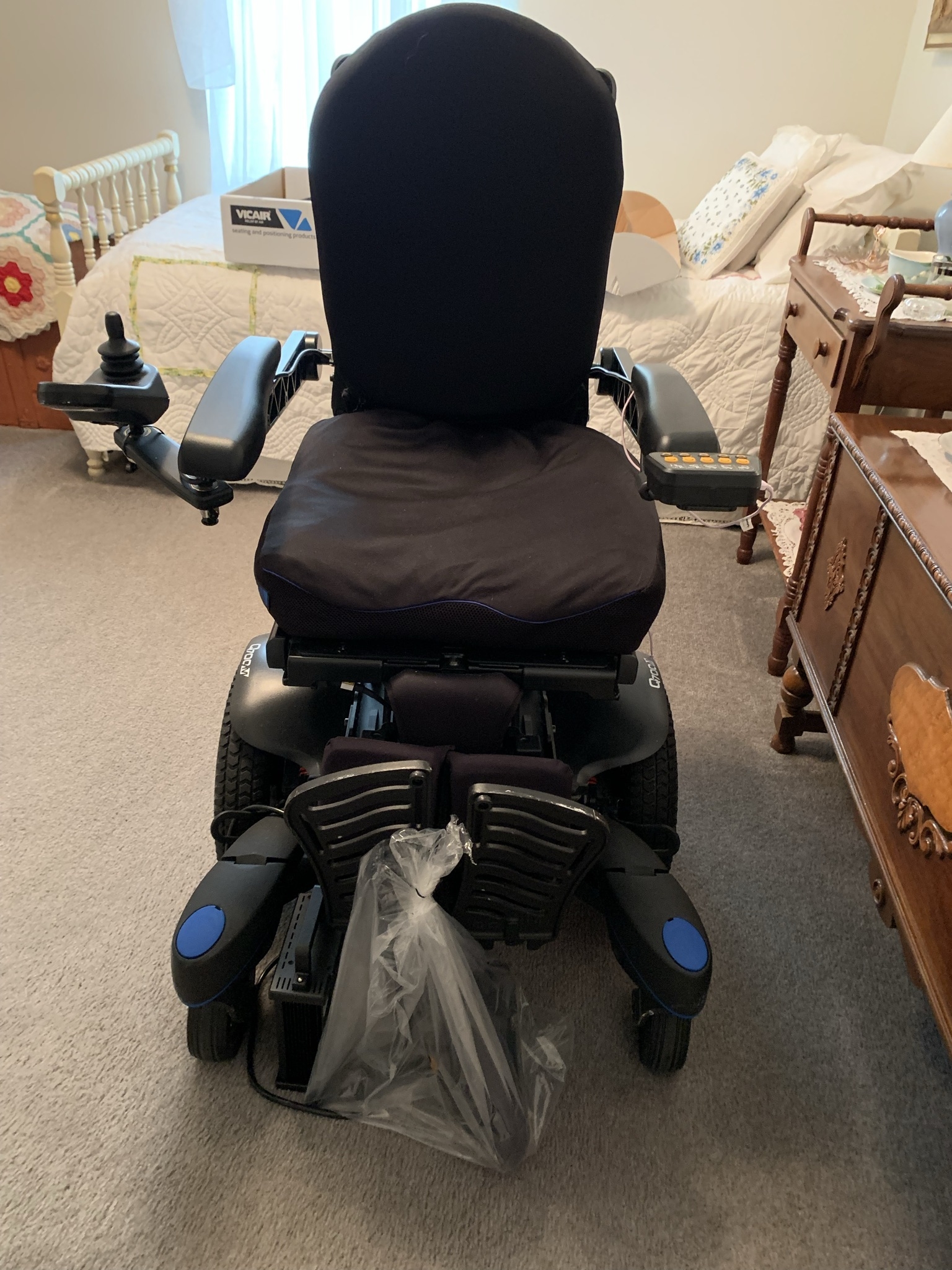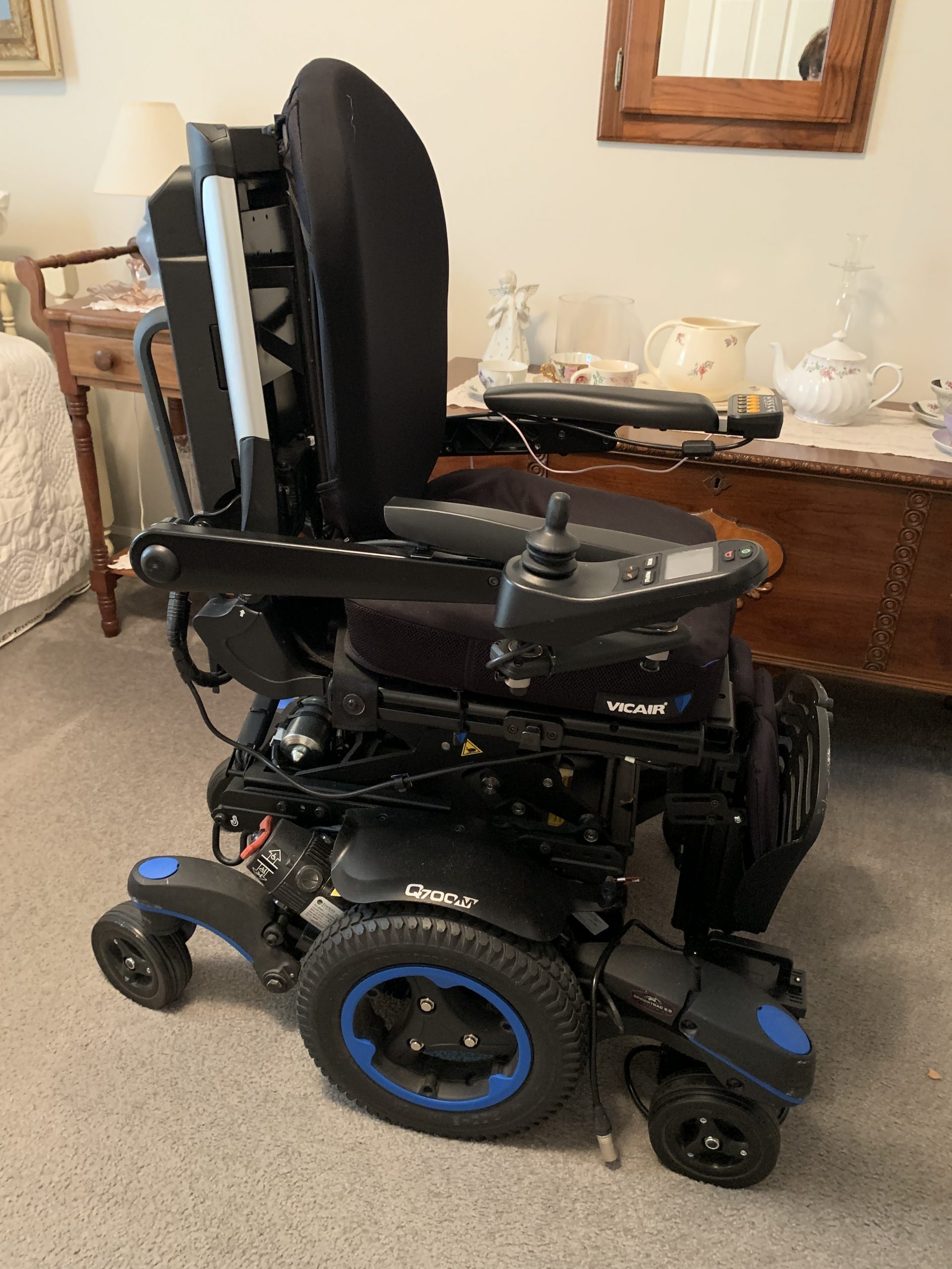 - This high performance Quickie Z700 M is nearly brand new. It was purchased new in August, 2020 for over $20,000 and has been driven less than 60 miles. The owner is a polio survivor and she has gotten more frail so the wheelchair was a bit too much for her. It is in mint condition, ready for your use. You will enjoy the 2.0 sports suspension which creates a very smooth and maneuverable ride. It has adjustable seat depth and width, backrest angle and height, leg rest angle, head rest, easy to use controls, lateral trunk or hip support, adjustable seat cushion, a maximum weight capacity of 300 lbs., a brand new battery, off line battery charger, as well as many more high quality features. All owner manuals come with the chair. We are open to showing you this power wheelchair in person in Columbia, Missouri or could Zoom or FaceTime with you if that would be easier. Shipping would be extra.