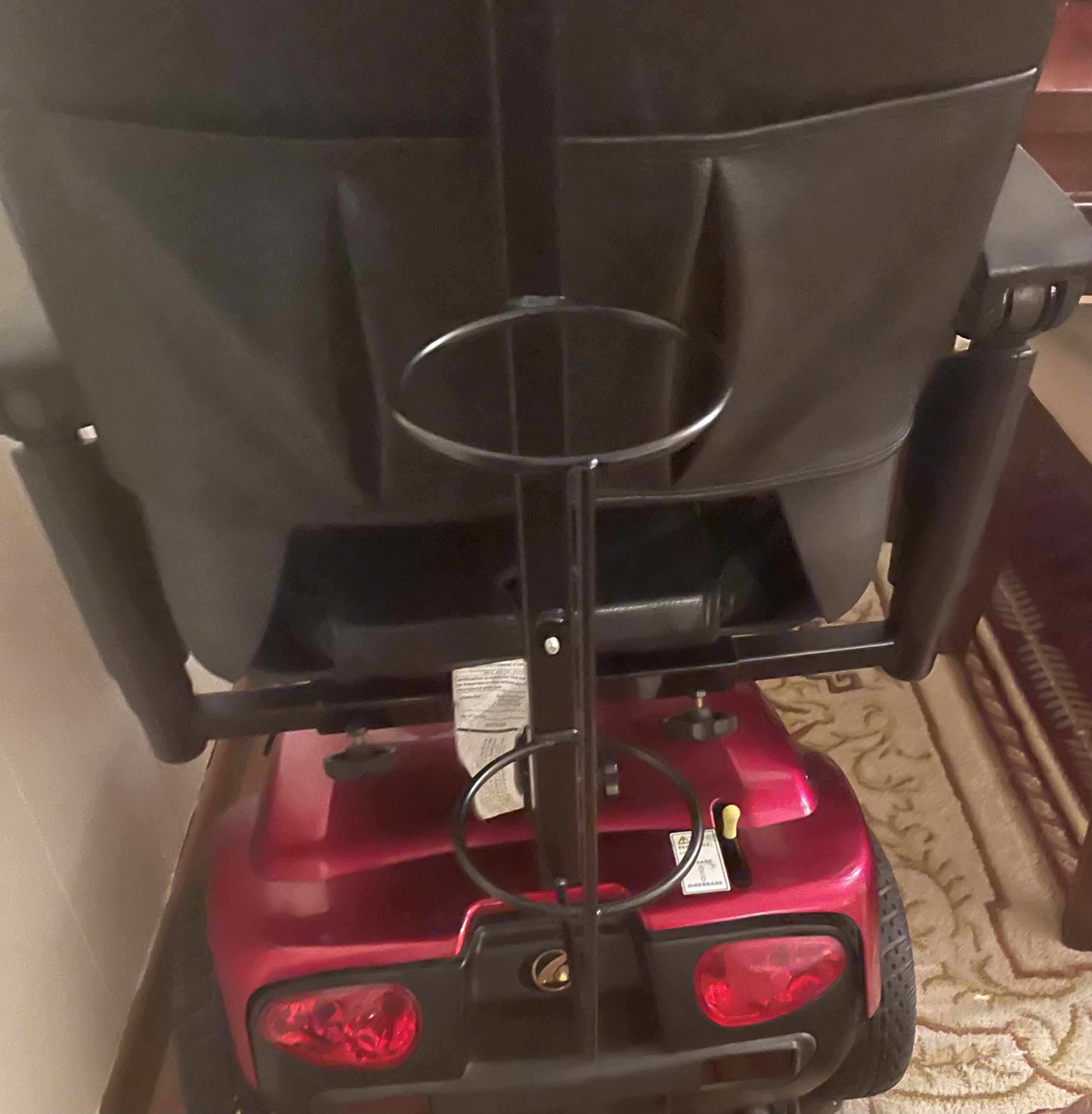 It also Has a basket to attach to it and it has a place for an oxygen tank in the back of the scooter. The date of purchase was approximately in 2018. If anyone is interested, I will include a small ramp to drive it in your home and a hitch to attach to the back of your vehicle for free. Â This item is Great for individuals who may have mobility challenges and this scooter will help you get around better. I hope you enjoy it.