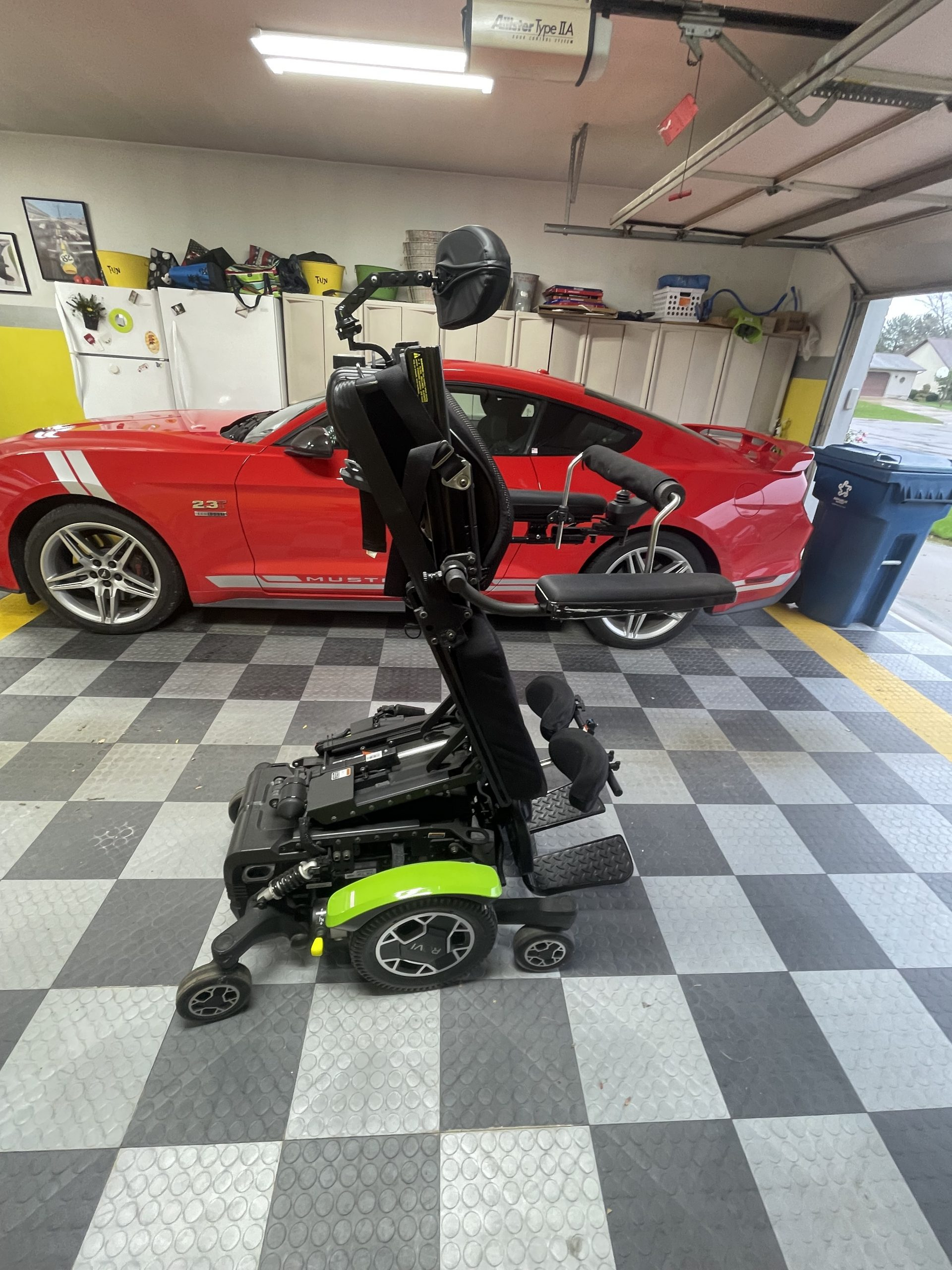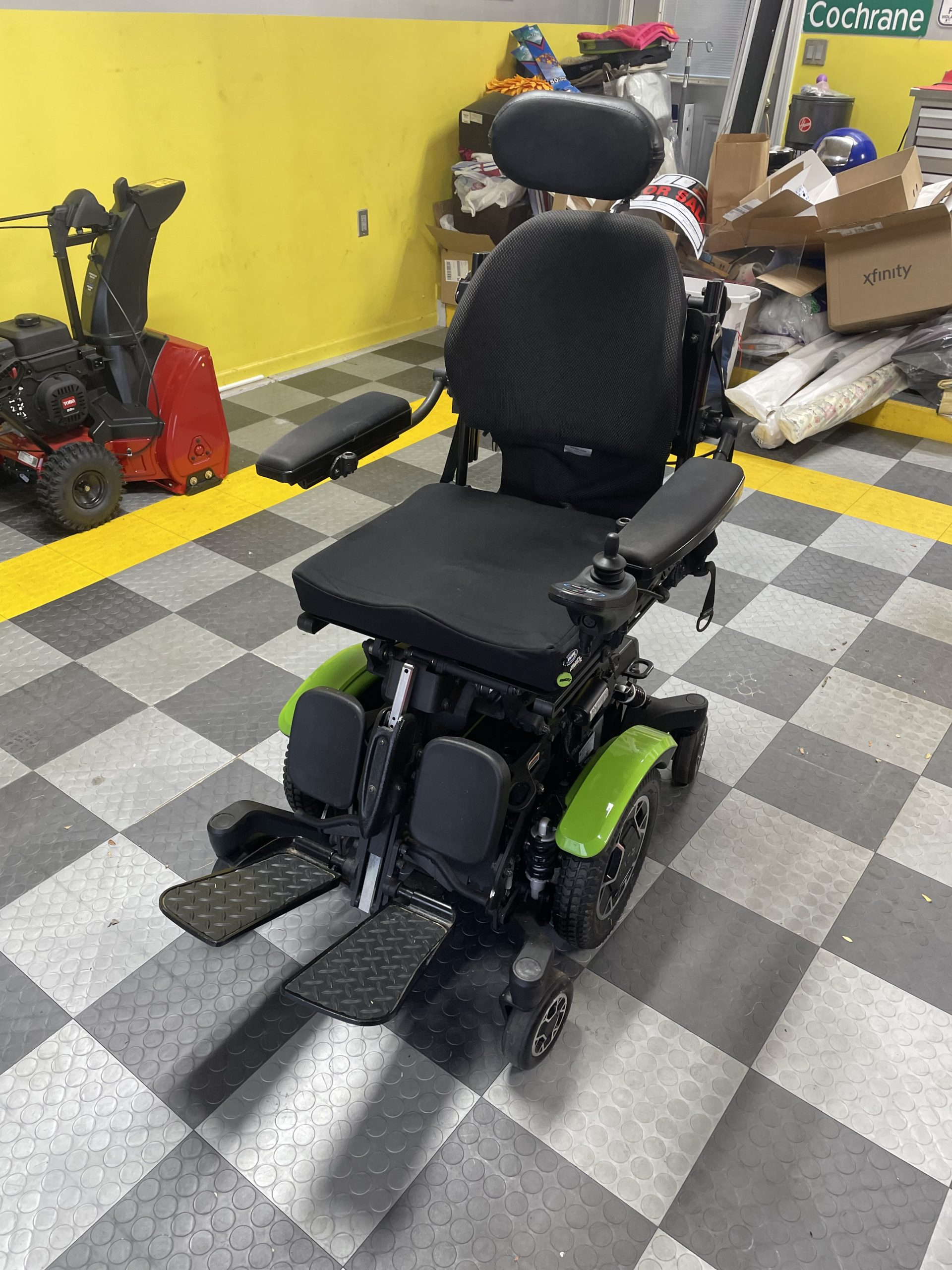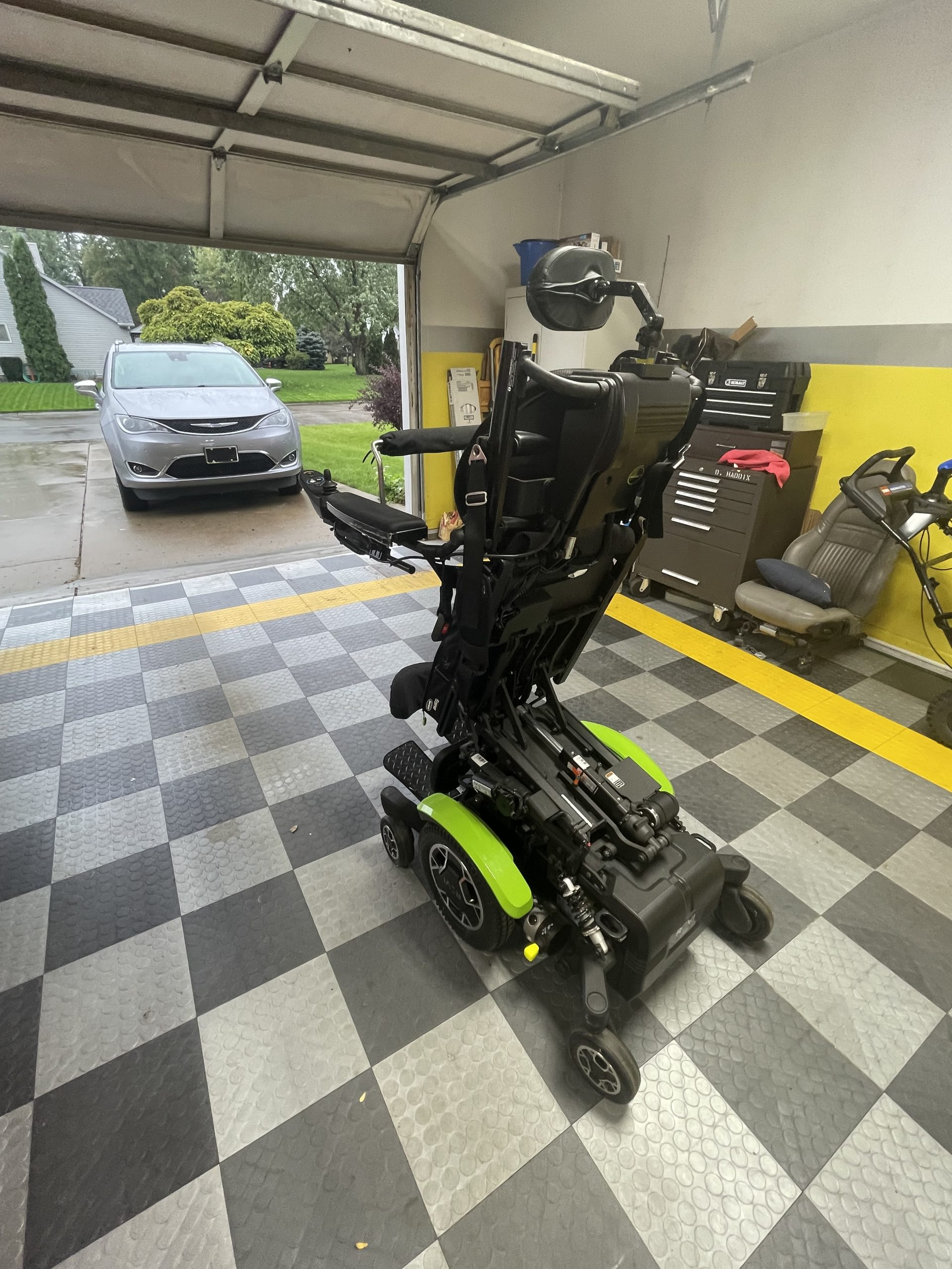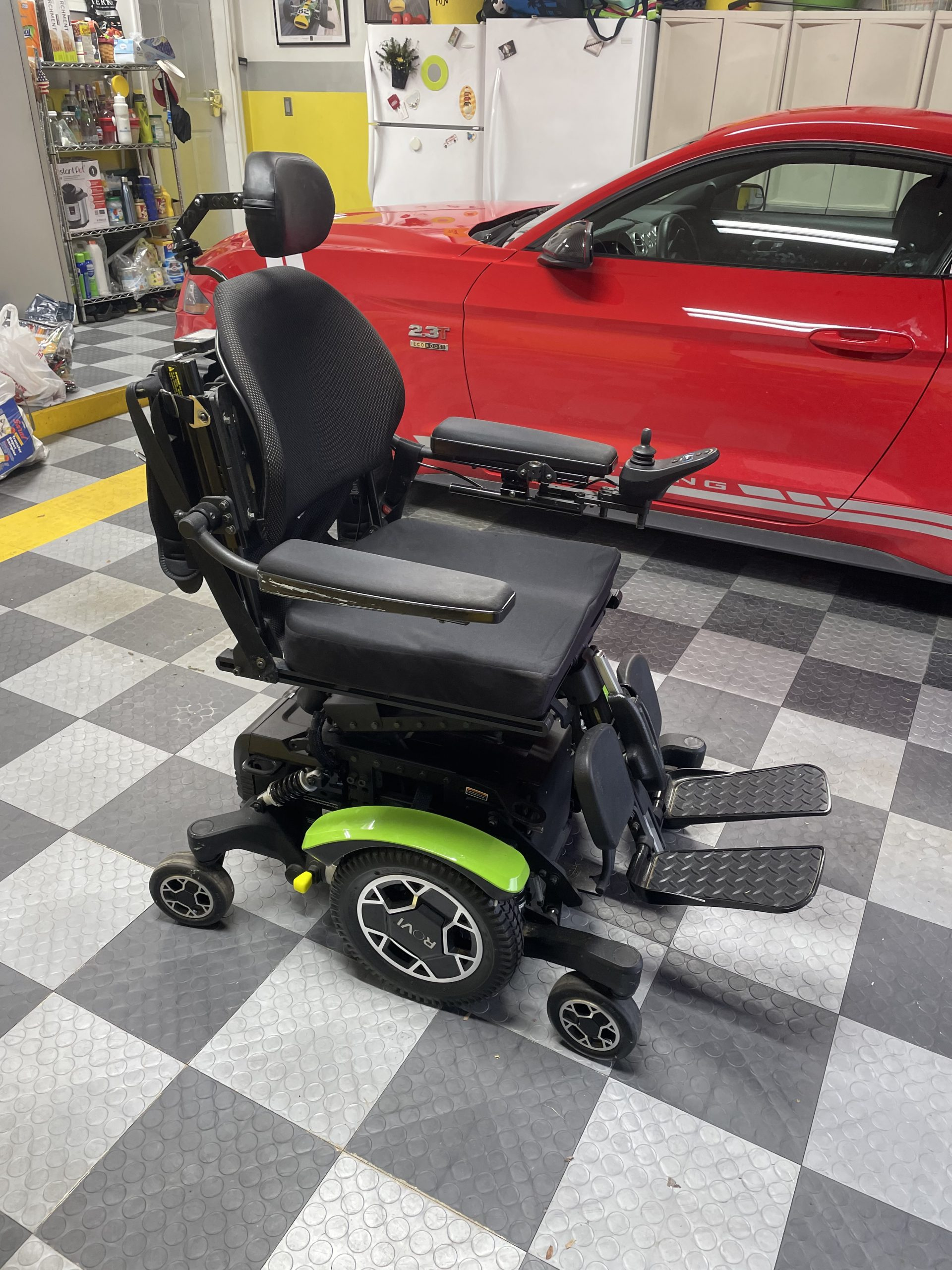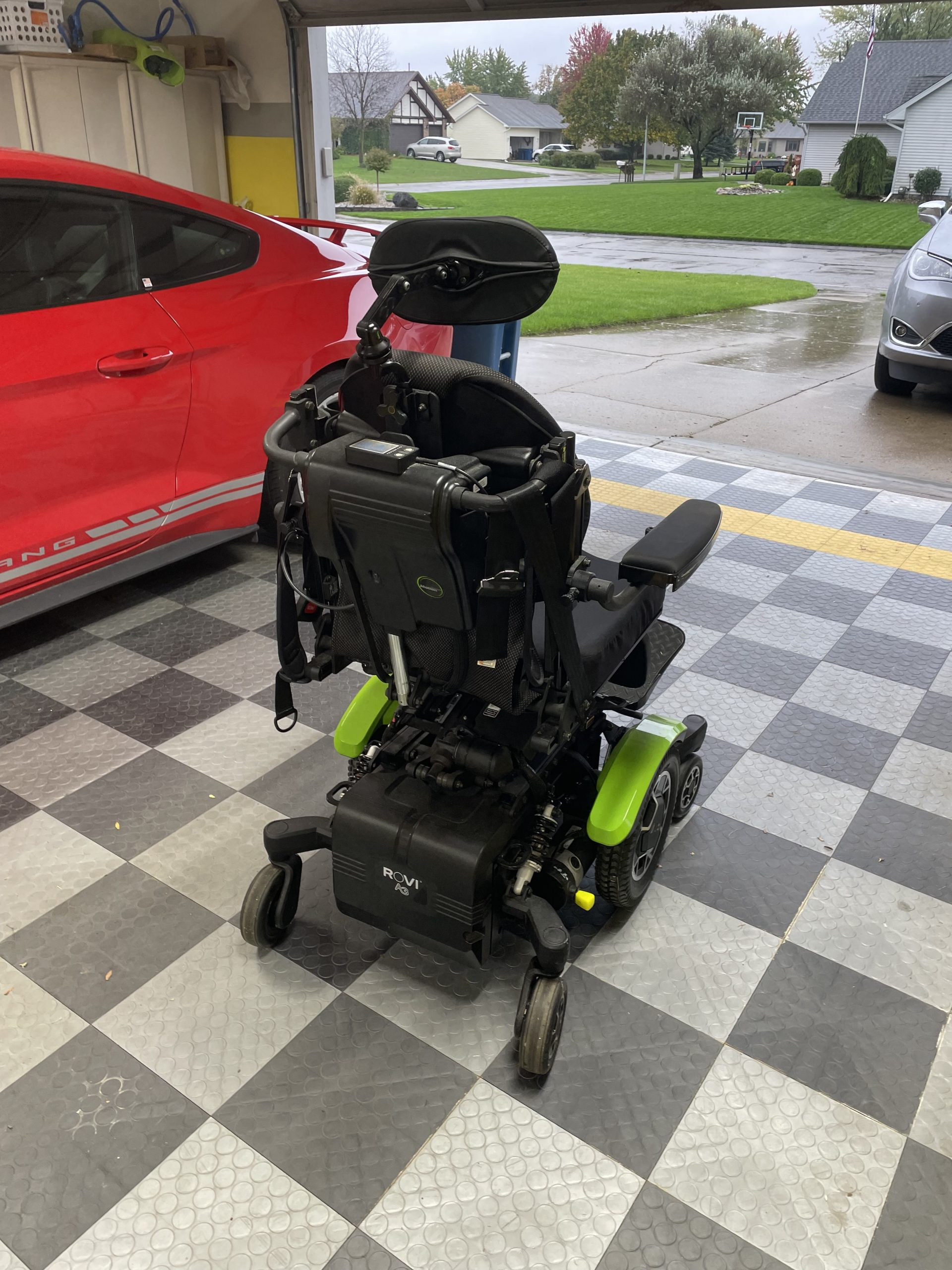 This wheel chair is a rovi stand up power wheel chair,green fenders,used by my wife who passed away from lou gerhigs desease in july, Im just now putting it up for sale. It is in excellent shape, mostly used inside. Works great and will benefit any one that purchases this chair. This chair will help the care giver take care of any one better because of the stand up feature for dressing and personal hygiene, when my wife kept getting weaker from Lou Gehrigs desease, i had too feed her, dress her,bathe her,and she even slept in this chair because of the adjustability of it. This chair will greatly enhance any ones life that will purchase it. My wife was a lot easyer and a all around happyier women because of the care i was able too give her from us purchasing this chair. if u can afford a stand up wheel chair i would highly recommend puchaseing one
