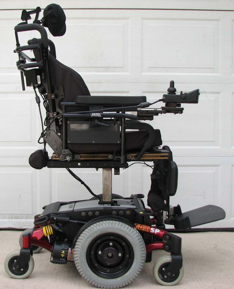 Nice Swing-Away CMPJ MK6i Programmable Color Joystick controller. It has 3 speeds programmed right now. In one of the pictures it shows the screen for Elevate, tilt and footrest on the joystick. There is a down arrow and up arrow for the Elevate, but the arrows are opposite for some reason. Maybe it was programmed this way. This chair has the famous 4-pole motors which are very powerful and responsive.