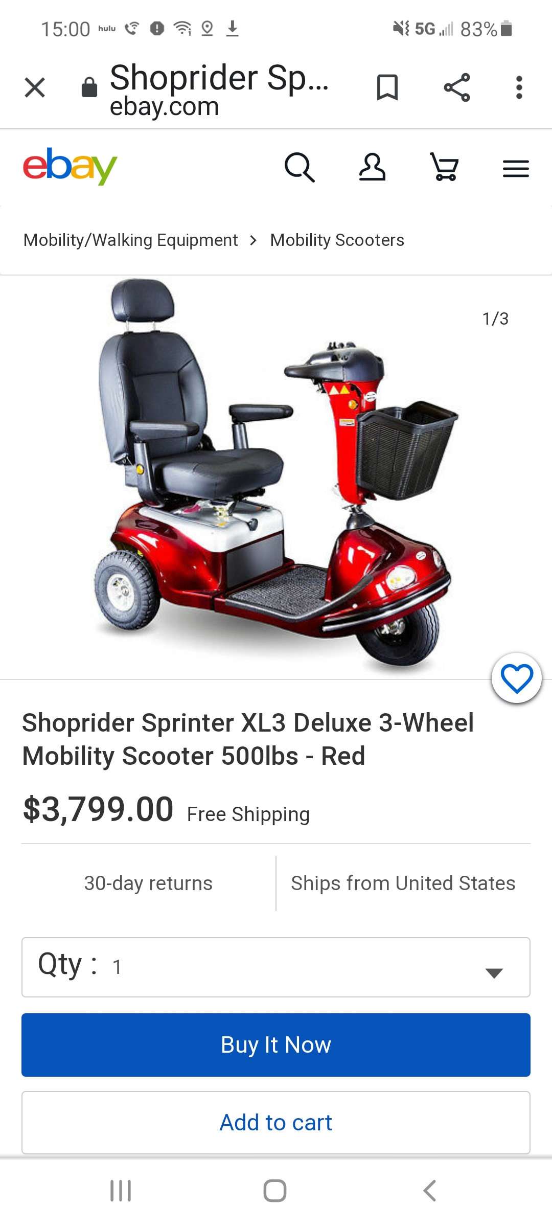 Sprinter XL3 Deluxe Scooter features an stable solid 3 wheel design, offering the rider stability, with 3-wheel maneuverability. With the vespa style tiller cover, black & Gray leatherette pillow top seat, and articulating front wheels allows you to drive with ease and luxury. The executive seat can recline, slide, and swivel for maximum comfort and easy transport. The Sprinter XL3 Deluxe comes with the world patented onboard charger with a retractable cord.