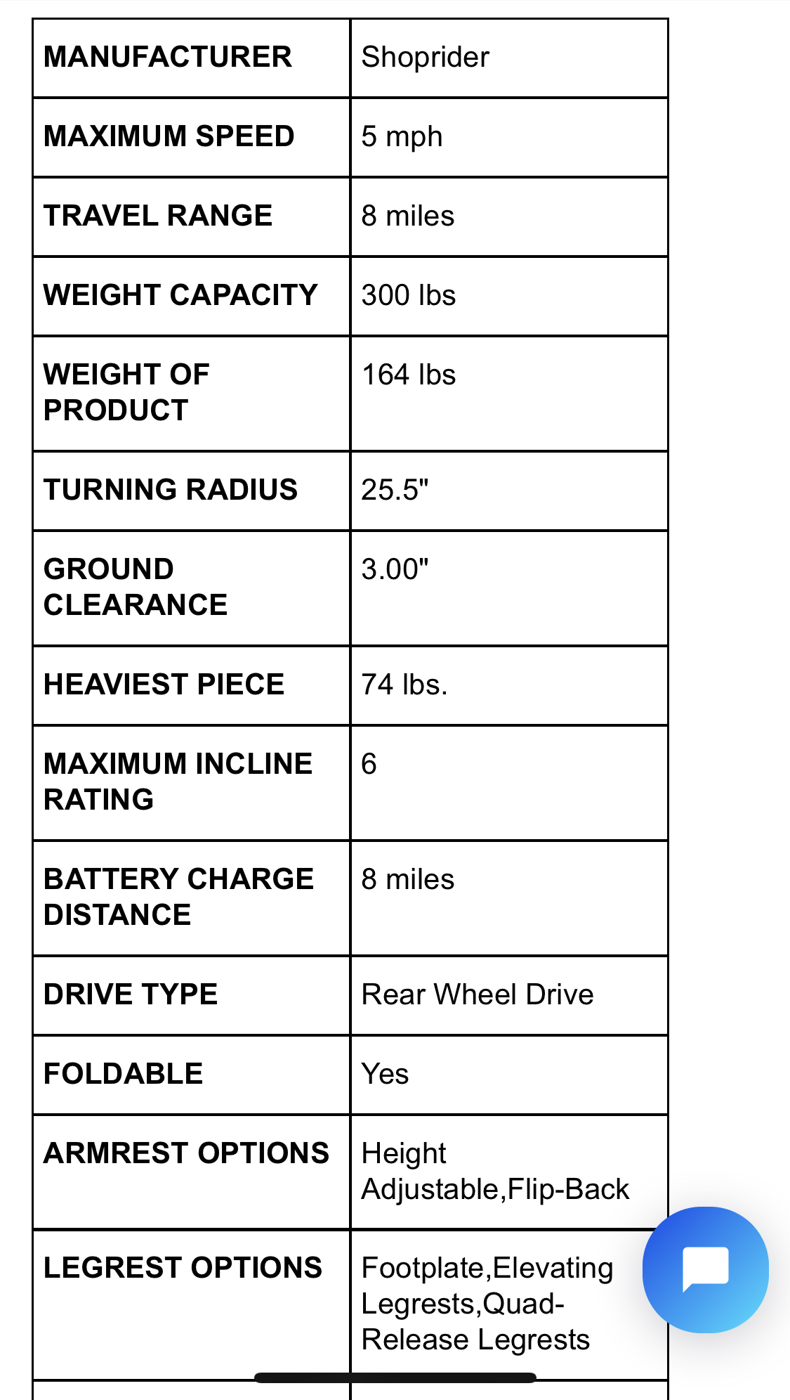 We purchased this a few years ago and my dad never used it. It has been stored inside.The Streamer Sport has a maximum weight capacity of 300 lbs., a top speed of 5 mph,, and allows you to travel 8 miles on a single battery charge. This unit presents innovative technology with the introduction of it super-lightweight, extra-long life battery.