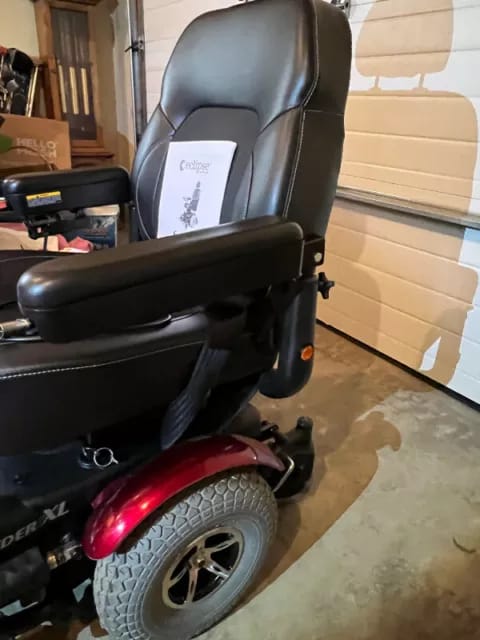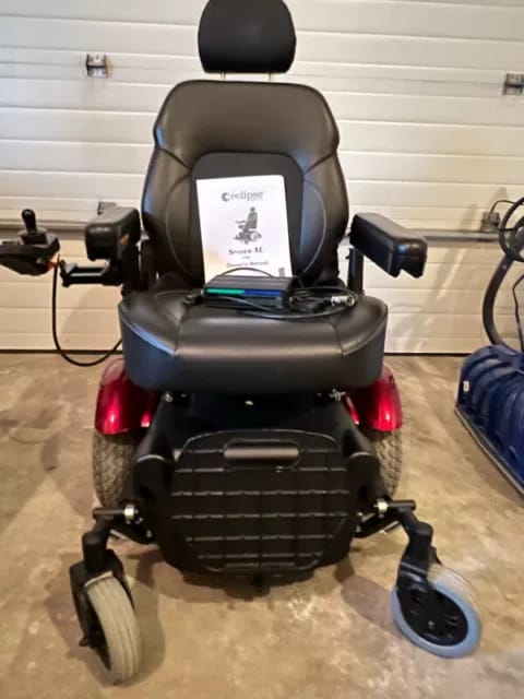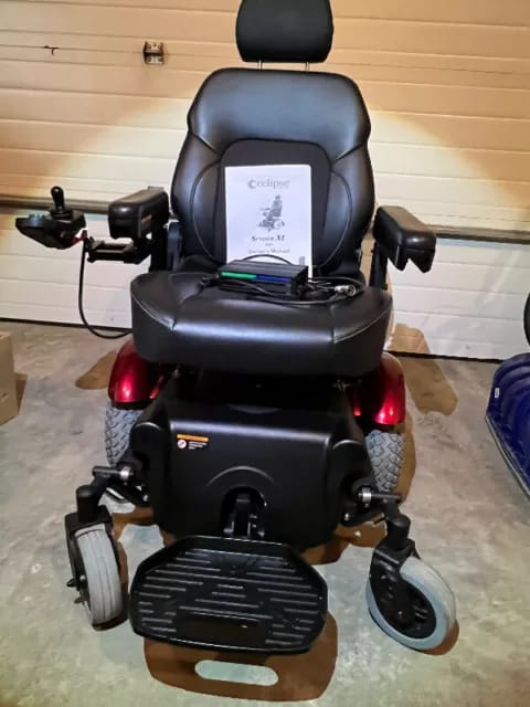 Excellent Wheelchair for both inside and outside. Swing away joystick Purchased brand new approx. 8 months ago Manoeuvres very well with no fault.You just buy and use with no condition,new batteries in excellent condition, tight turning radius, power tilt seating, height adjustable flip back armrest, angles adjustable swing away leg rest, angled footplates, contoured adjustable headrest, fender light package with button control, seat belt,body harness, vehicle secure locks as well as IPad mount.I am selling it because my son got me a new one and I have decidedto give it cheaper.I would not like to bit price.I can deliver to all states but not international.