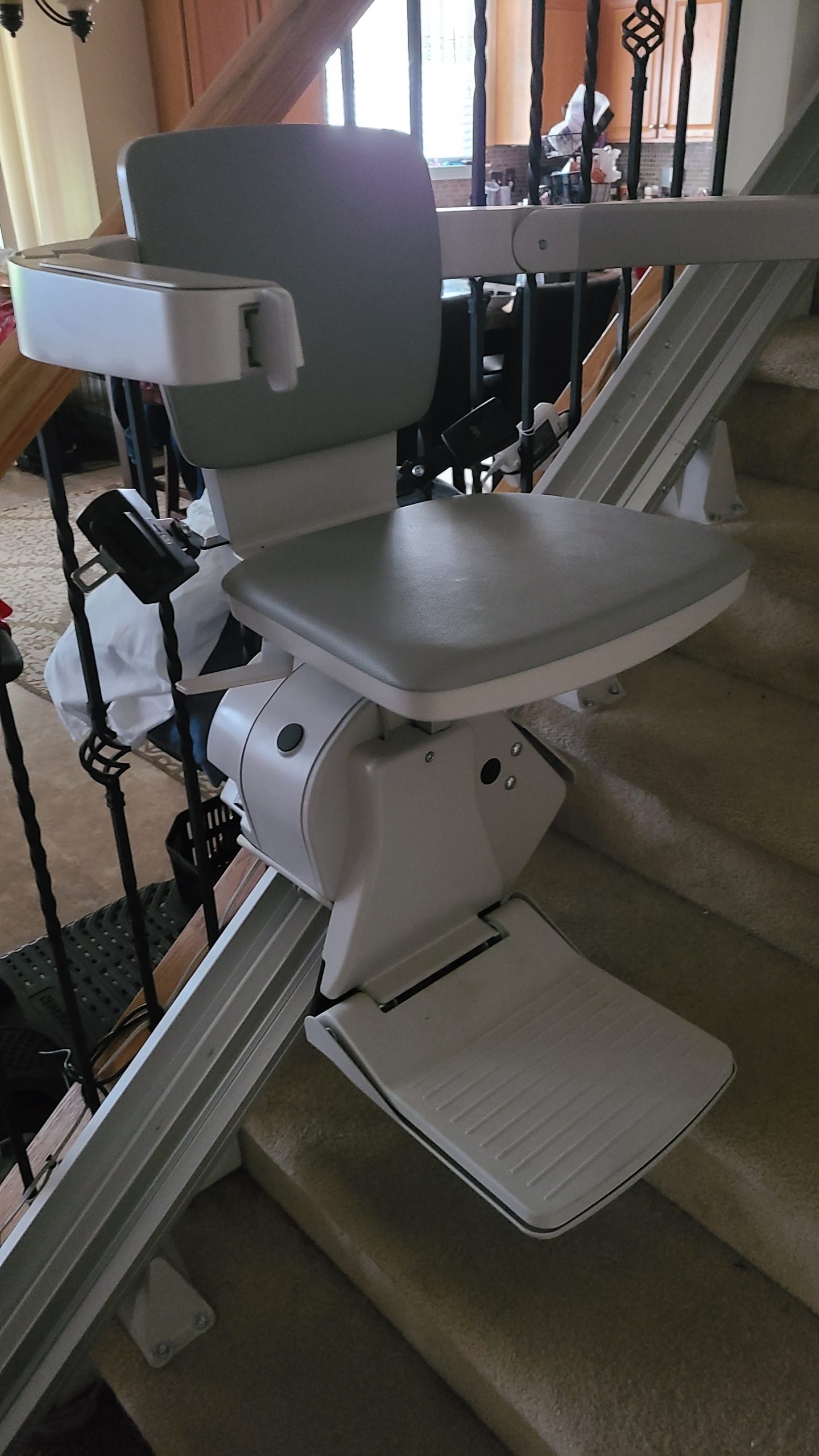 TWO stair lifts with rails three remotes both great conditions used for less than a month, chairs, back up boxes, chairs sensors, fold to make more room on stairs when not in use. Asking $3000 for both paid $7000 for both. All you have to do is get them installed at your house, still brand new condition, no neg. For asking price arms and seat fold along with foot rest. Seatbelt in place, there is a switch that patient is able to use on their own. When they cant there are remotes. There are sensors hooked up in place for safety of patient. Located in greenville county, this is TWO straight stair lifts for the price of ONE!. Had turn properties to get on and off chair easily , will not move if chair not locked in placed.installed with legs attached to stairs every three steps very secure holds up to 300lbs . Use even when power goes out due to battery availability.