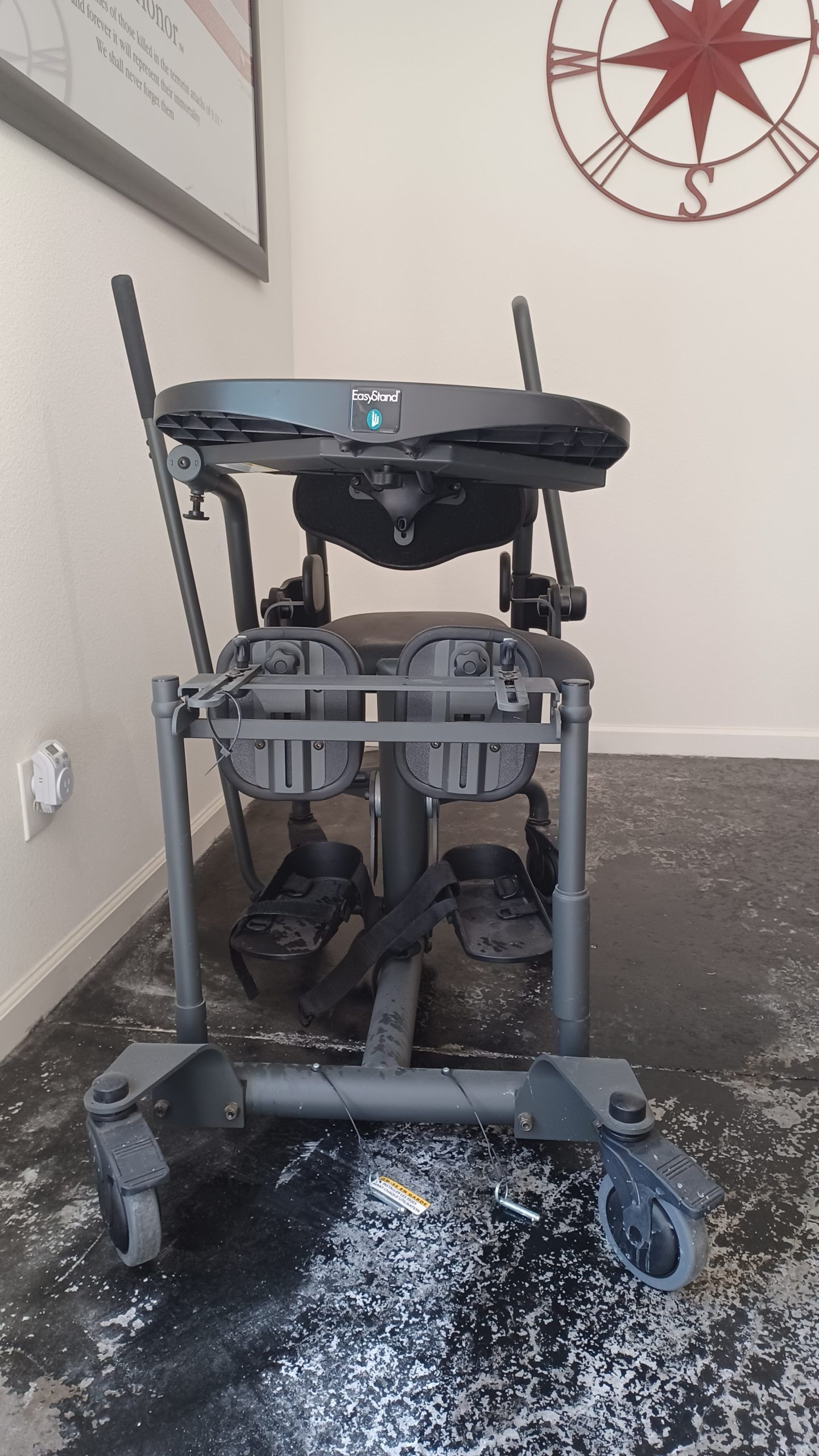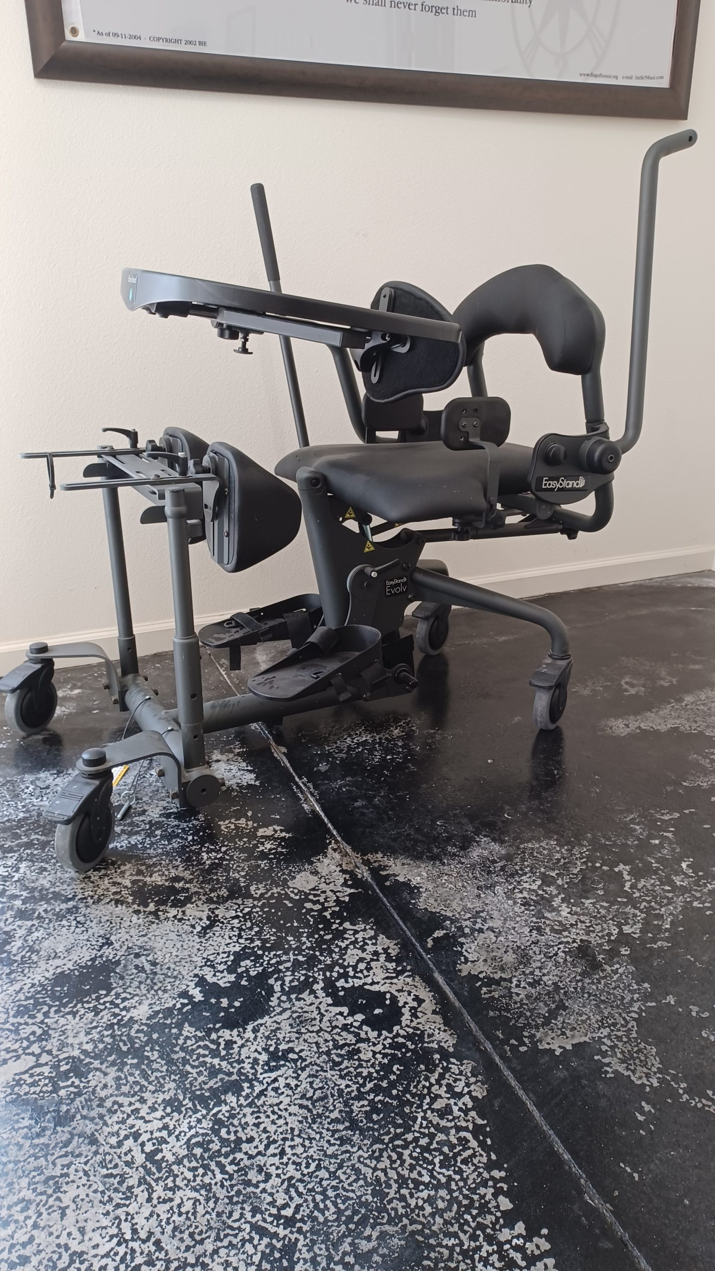 This Size Large EVOLV EASY STAND SIT TO STAND stander has barely been used. It's an excellent condition. It does have a slight scuff/mark on the front part of the seat. We are willing to deliver for an additional fee within a 200 Mi radius of Clovis california. This is a great stander to help get a patient in and out of the standER without difficult transferring. It has a manual actuator pump, foot straps, knee pads, hip supports for a symmetrical alignment when standing, black molded plastic shadowing tray and many other features. Serial number v4024187020. We are asking $1,000.