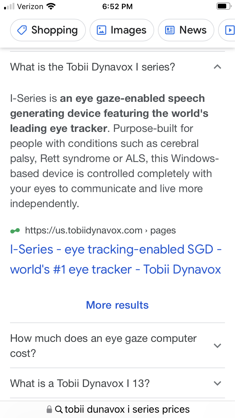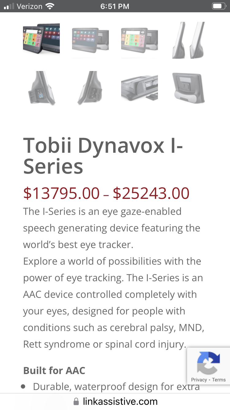 Tobii Dynavox I-series eye gaze computer system. Use to communicate through your eyes for someone who can’t speak. It also has email, internet, Facebook ect on it.
