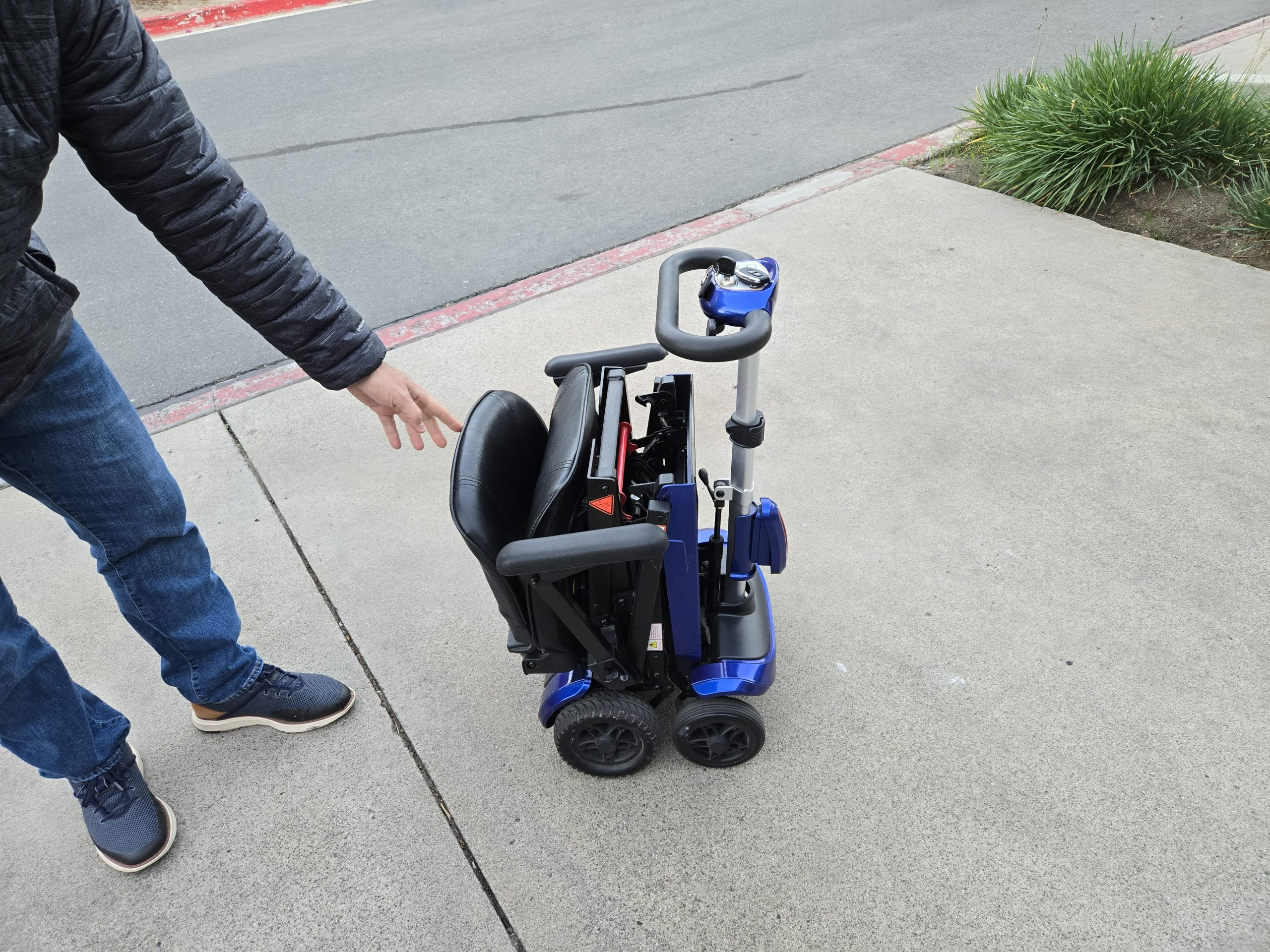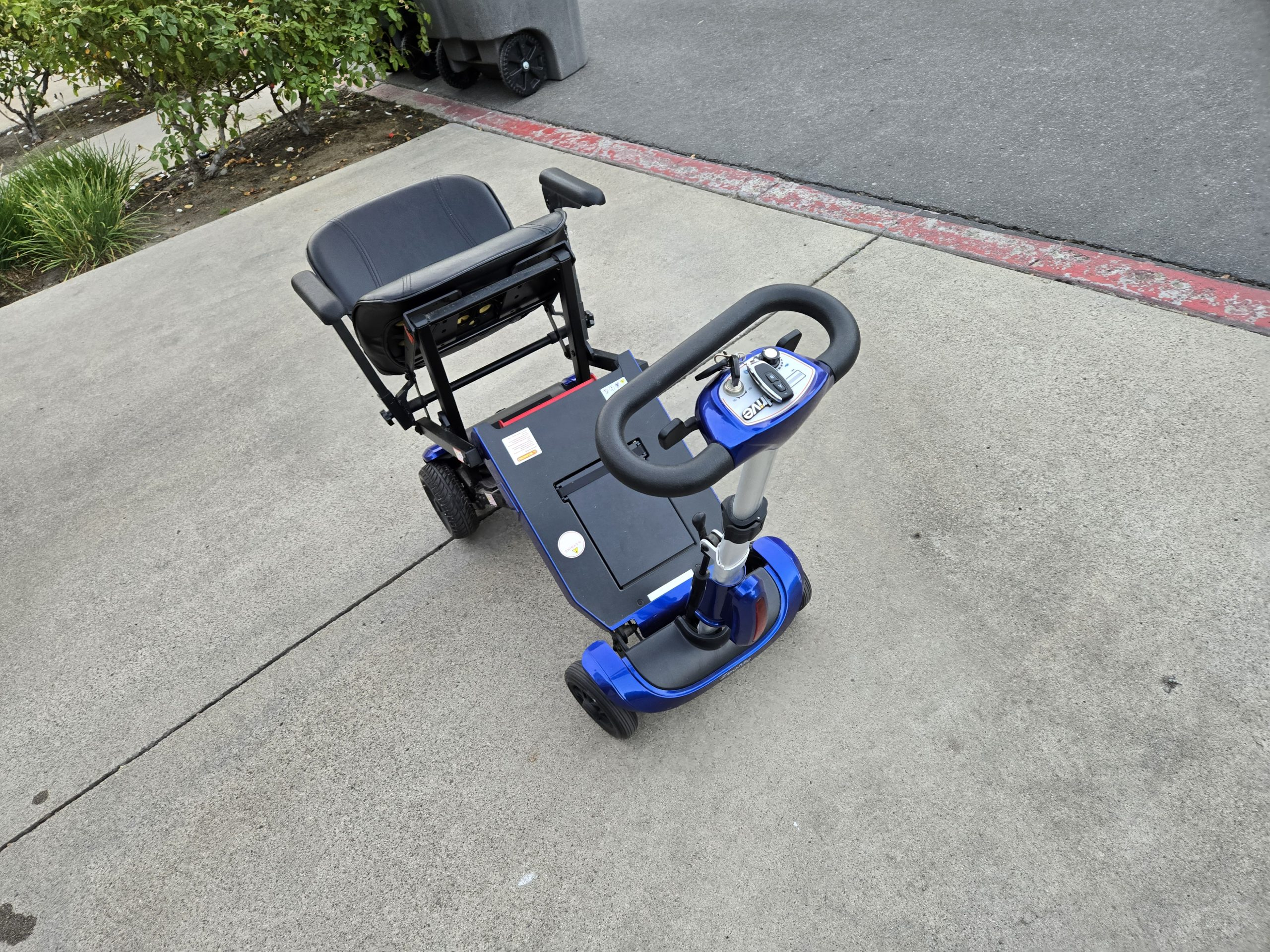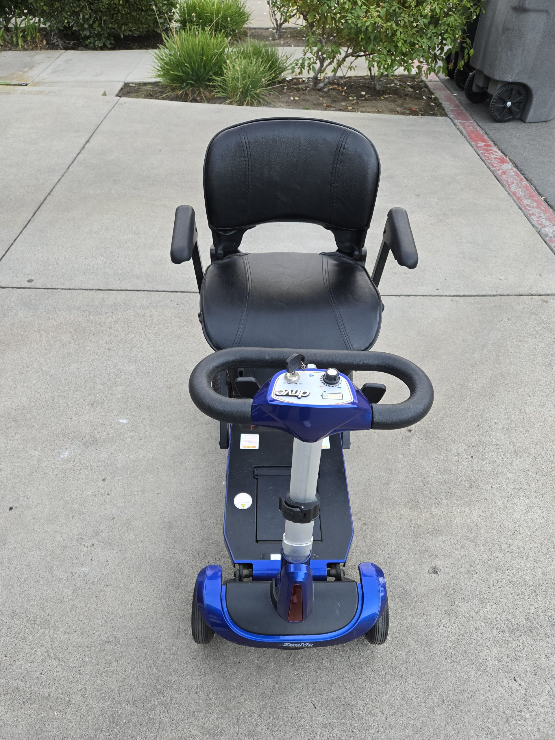 Used Drive Zoome mobility folding travel scooter for sale includes key fob and remote. I am not sure of the original purchase date but it was within the past 5 years. The scooter folds to 17 inches long x 17 inches wide x 23.5 inches high. $2800 if purchased new. It holds up to 300 pounds. It was not used very much and a new battery was installed in November 2024. Rip in a seat that has been repaired and does not affect operation. Otherwise in good condition. Travels up to 4 mph and the driving range is 13 miles. Easy throttle control for users with limited dexterity. The product weighs 60 pounds. It has a padded armrest and the padded backrest folds. I live in Lake Forest, California in the Orange County area. Please email or text 949 306 2228 if you have any questions or would like to come by to see it. I accept cash, Venmo or Zelle.