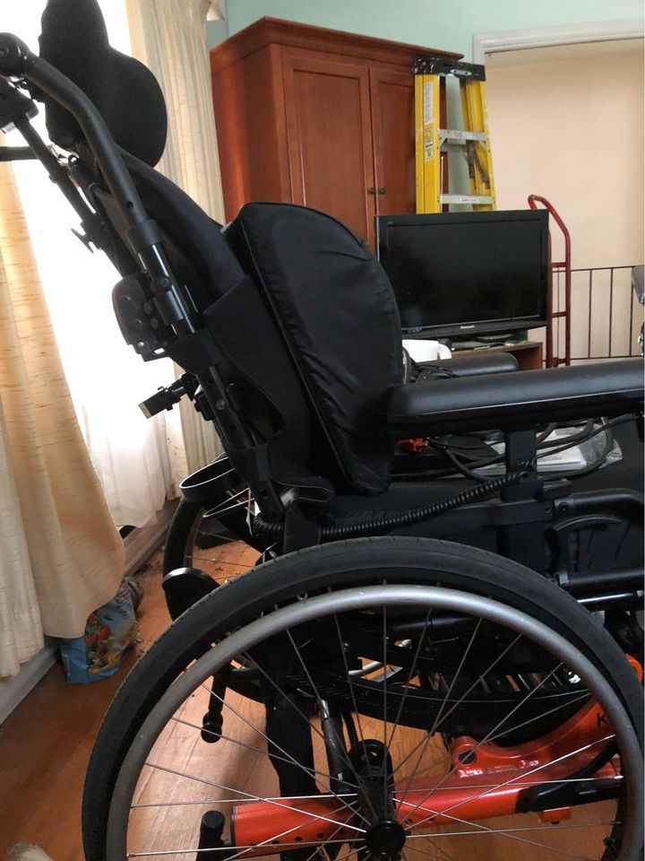 This tilt wheelchair was received last fall of 2020 and has been used by my father who recently passed. There chair is in great condition as it was kept with him at a nursing home and was only used when he had to go out for dialysis appointments. There are no dents, scratches or missing parts. It has an electric tilt function to assist individuals with pressure sores to tilt the back down where individuals may recline. It is not motor driven, it is manual effort!! It comes with leg rests and a rack where the oxygen tank can be carried. The wheelchair is functioning and comes with a charger. Please feel free to reach out to schedule time to see this chair. Delivery can be provided for an additional fee. The chair is located in Chesterfield, Virginia. Also, please note that you will be asked questions to confirm that you live nearby and are not a scammer.