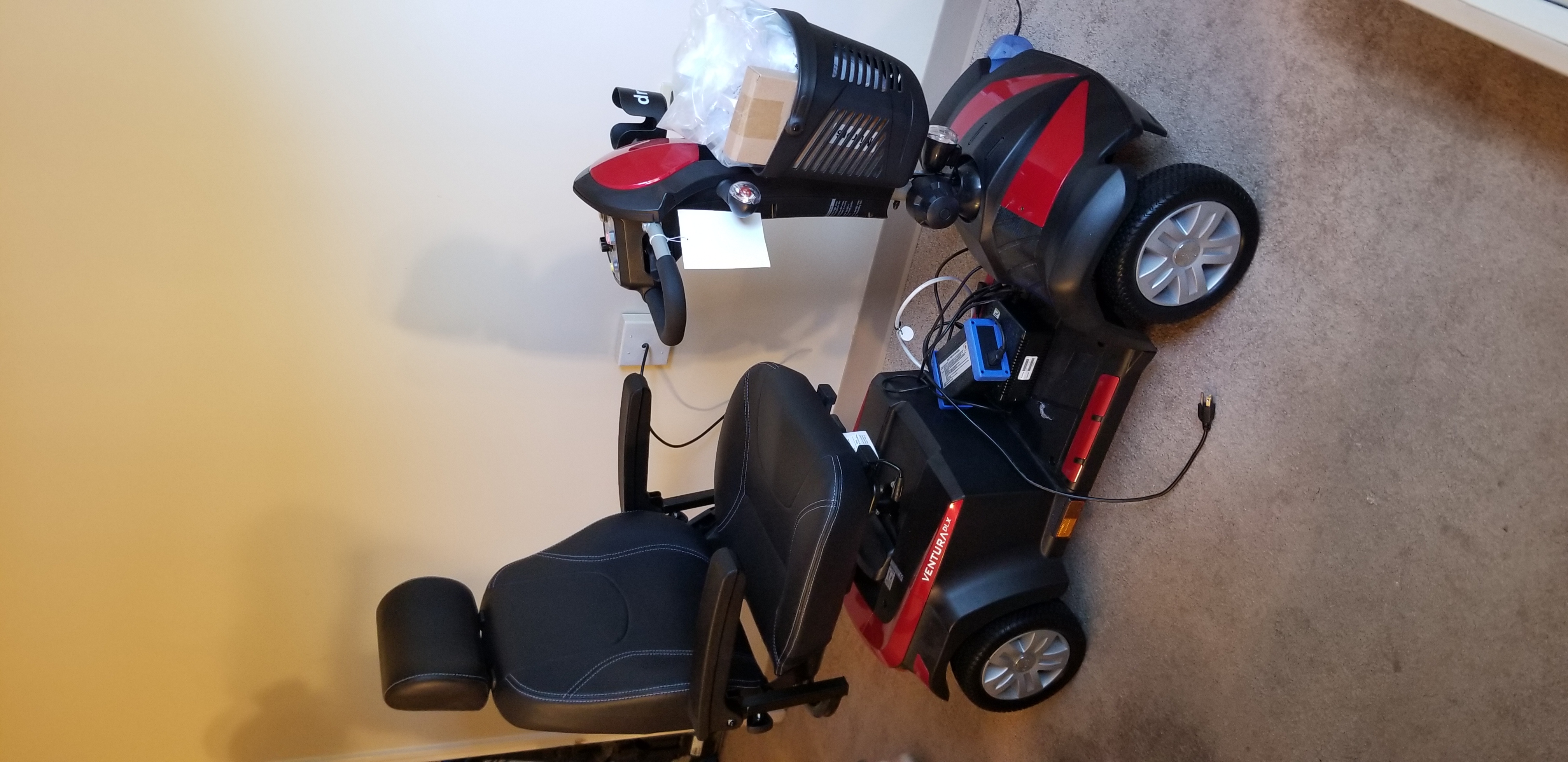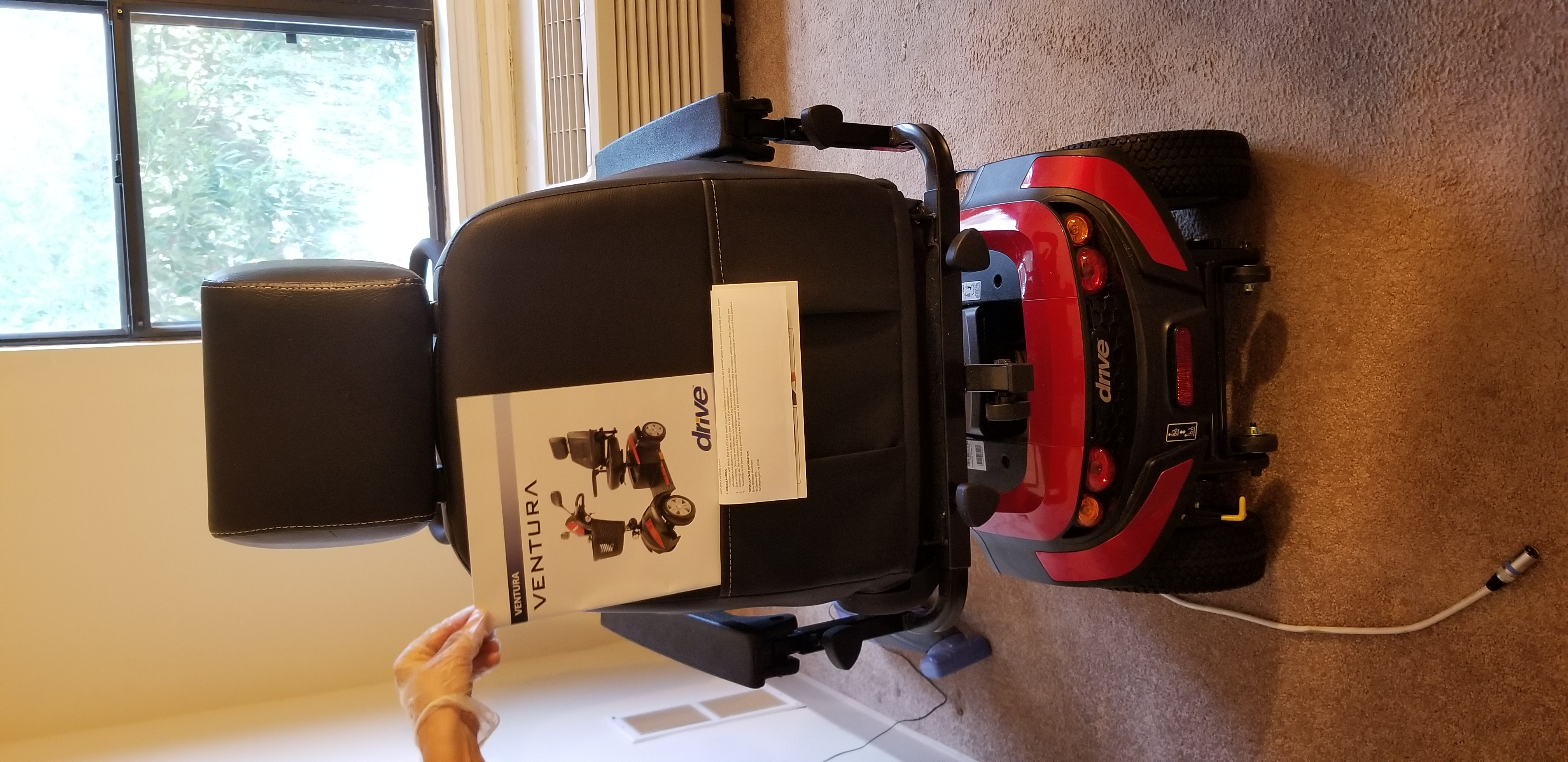 This is a brand new Ventura Drive Mobility Scooter. It has a large comfortable seat for larger individuals, but works great for smaller people as well. It can really cruise in it's fastest speed, but should probably be driven in slow mode inside! It has been driven once inside a residence, but the owner preferred the smaller scooter she owned and used it instead. She passed and proceeds will help the family pay for her funeral expenses. It is a bright candy apple red and has owners manuals and chargers ready to go. There are even spare parts and extra baskets that come with it. We are asking for $1500 or best offer. This scooter retails for $1899 new and since it's still brand new we would like to get around $1500. All reasonable offers will be considered. We accept Zelle and PayPal payments as well as cash or check.